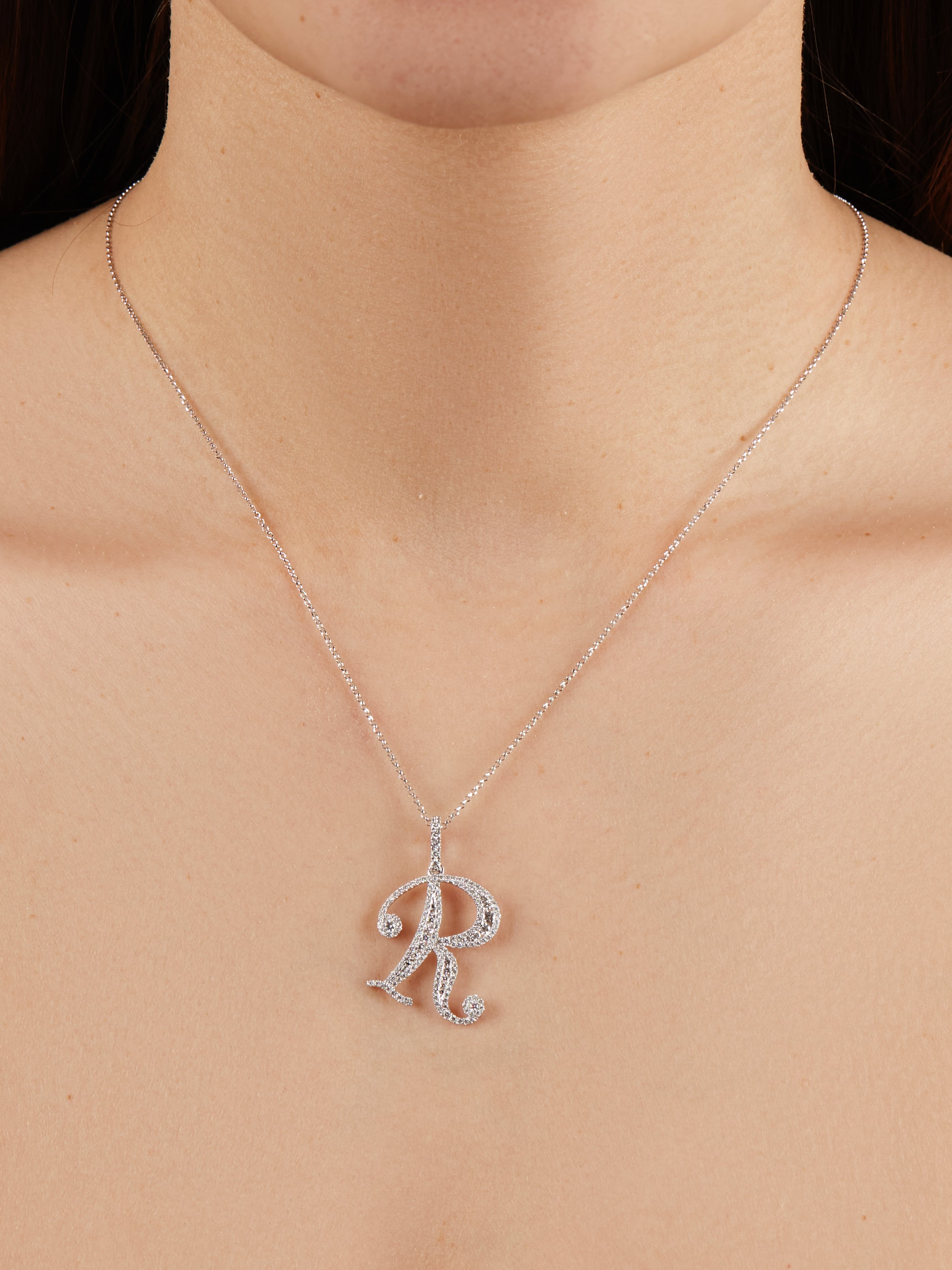 White Gold & Diamonds Letter "R" Necklace