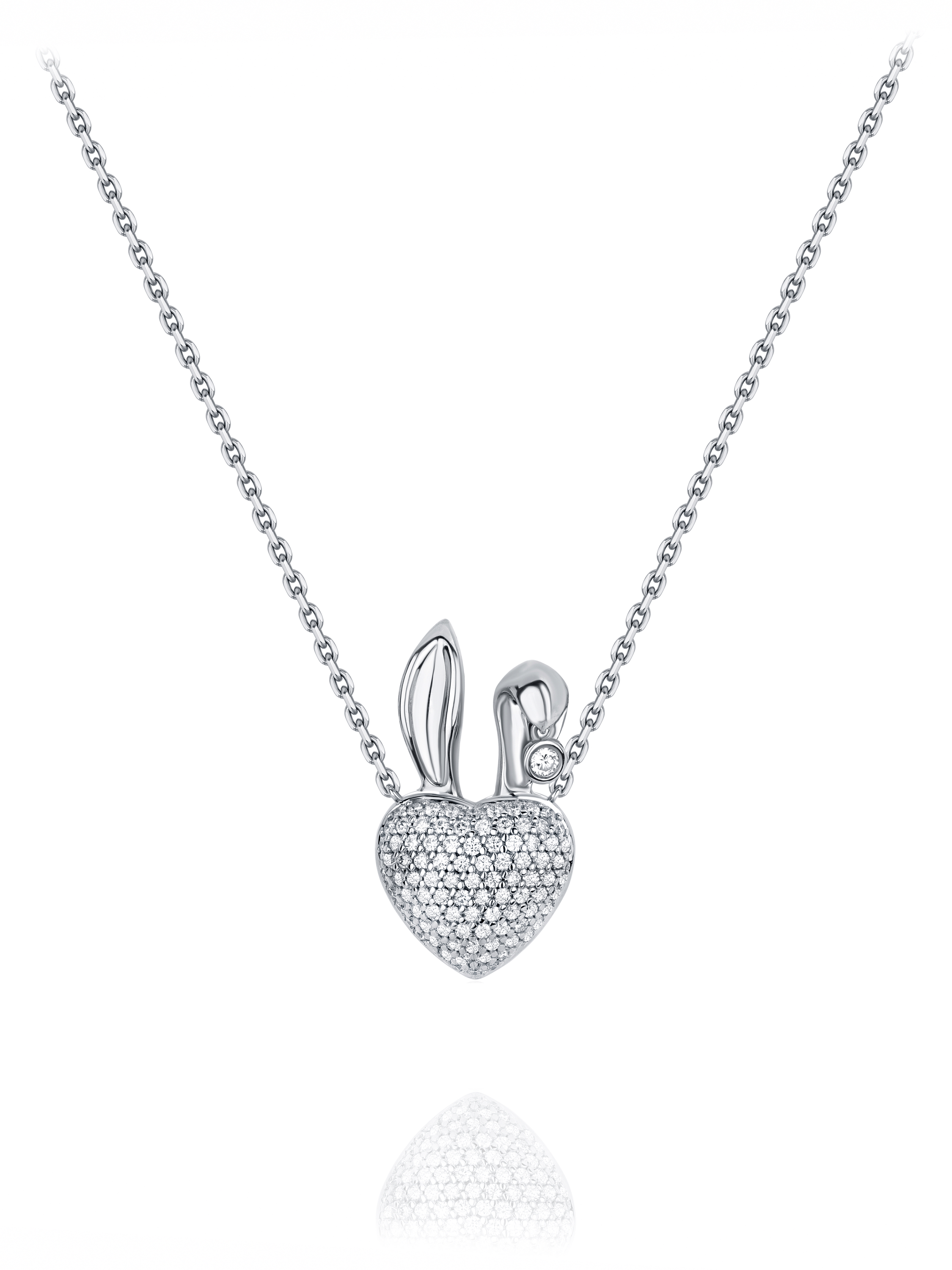 Necklace with a heart‑shaped pendant in 18K white gold and 95 round brilliant‑cut diamonds with a total weight of 0.62 ct.