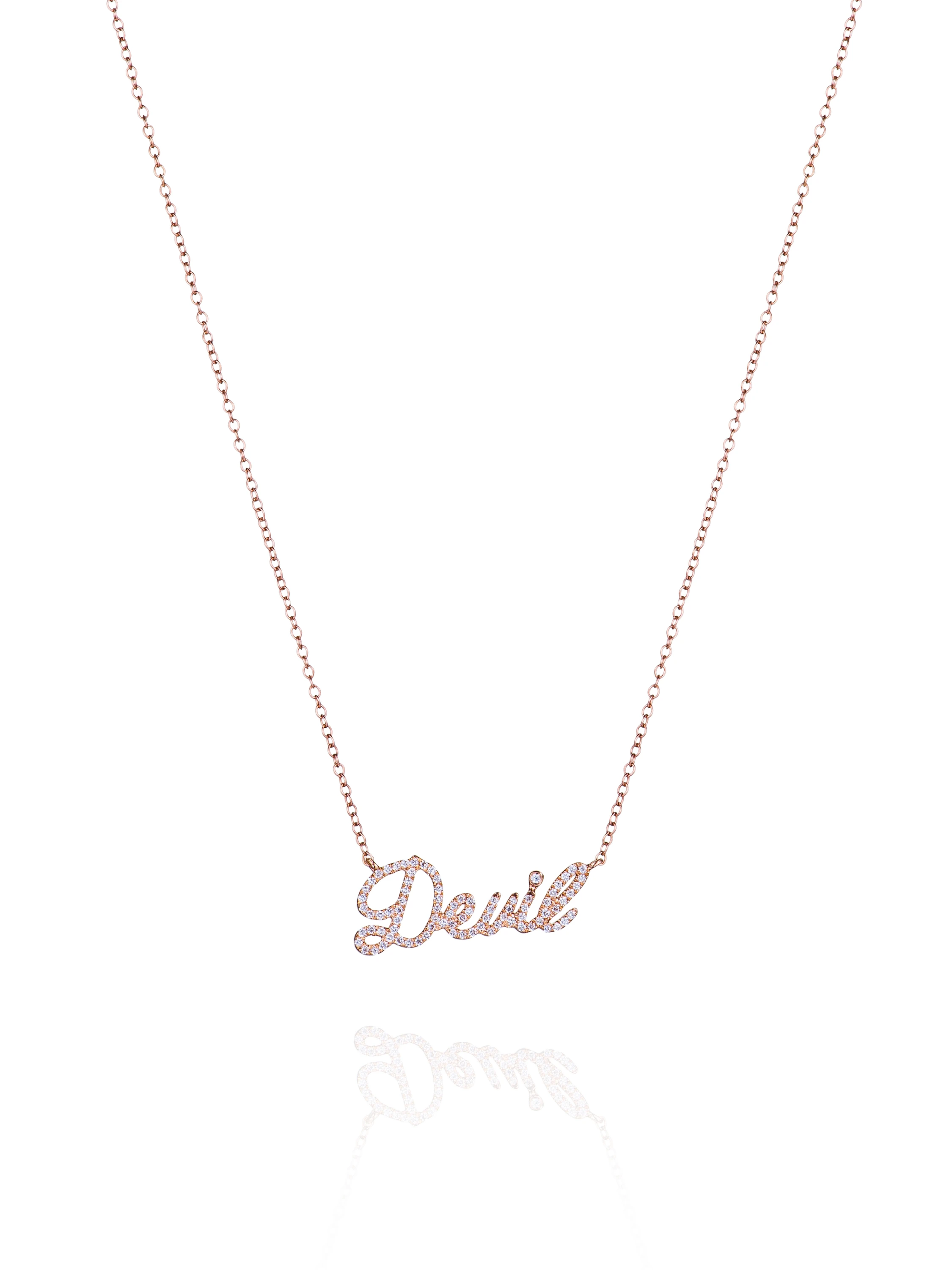A necklace with a "Devil" pendant in rose gold and 38 round brilliant-cut diamonds with a total weight of 0.16 ct.