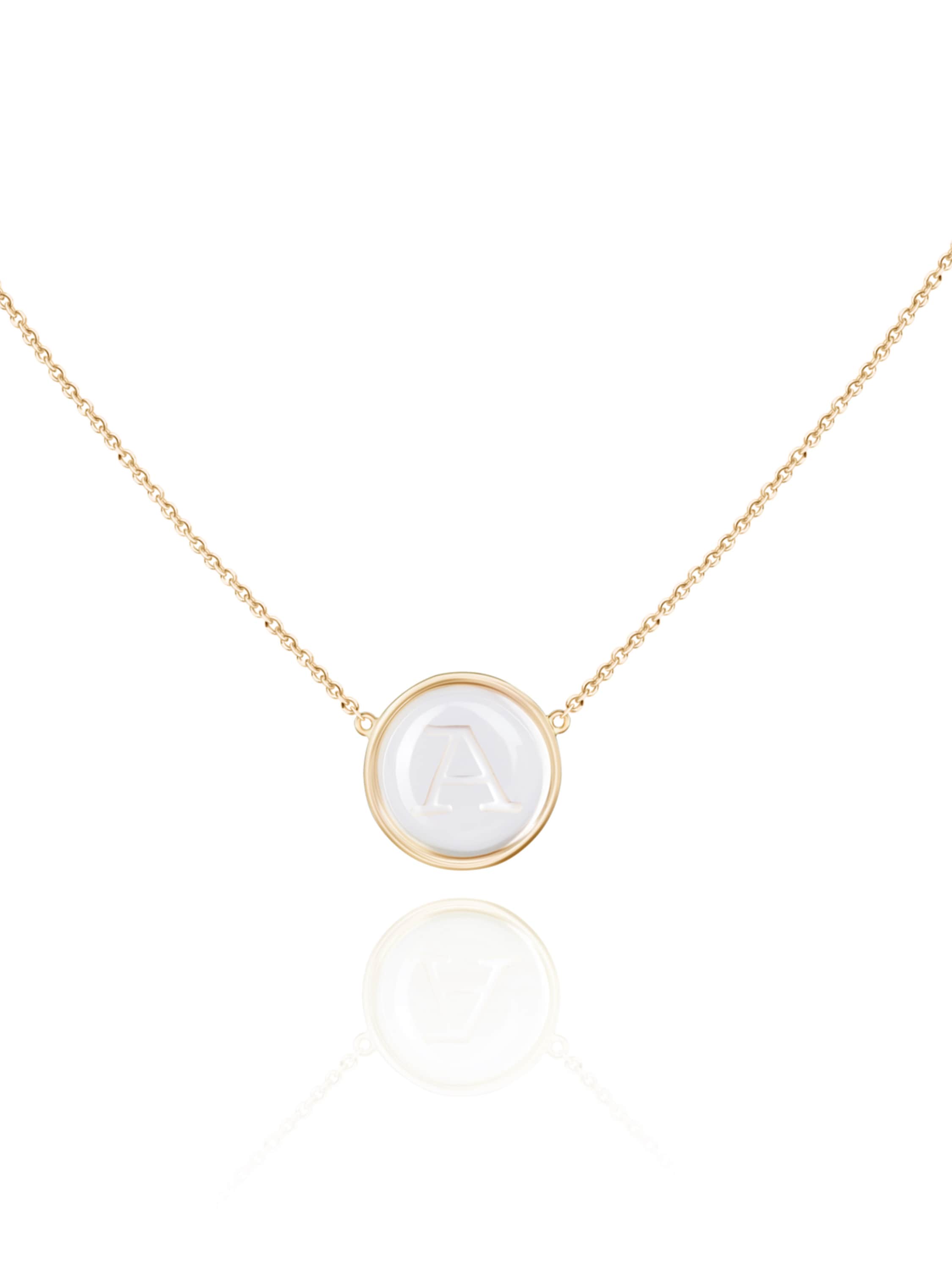 Gold necklace with a pendant featuring the letter A and a rock crystal weighing 6.13 ct.