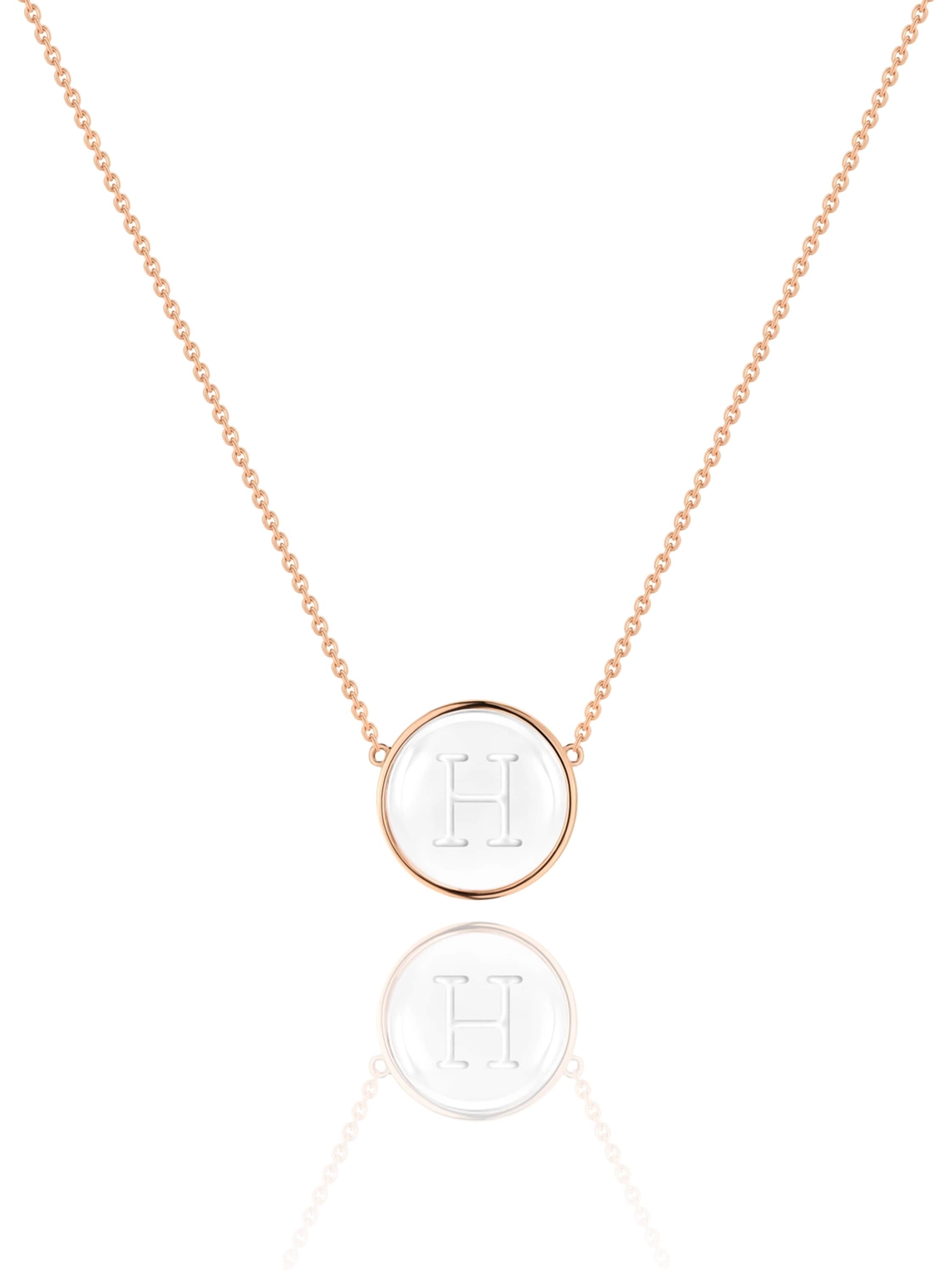 Necklace with an H-letter pendant in rose gold with rock crystal weighing 6.20 ct.