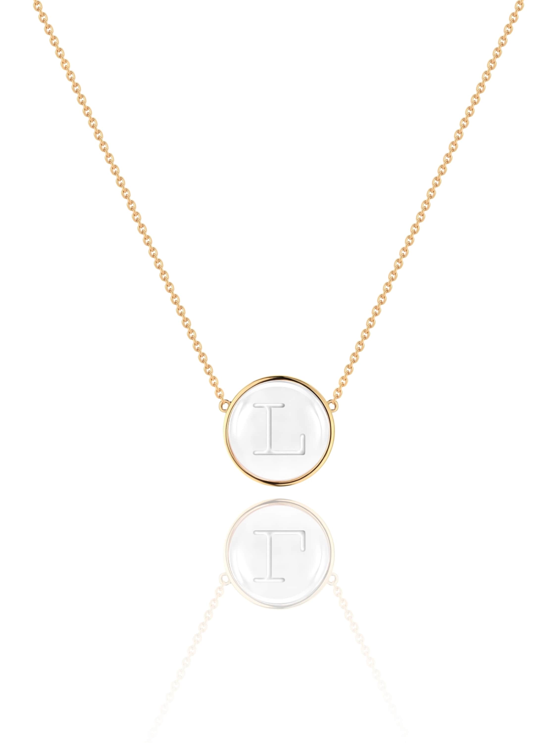 Necklace with an L-letter pendant in yellow gold with rock crystal weighing 6.79 ct.