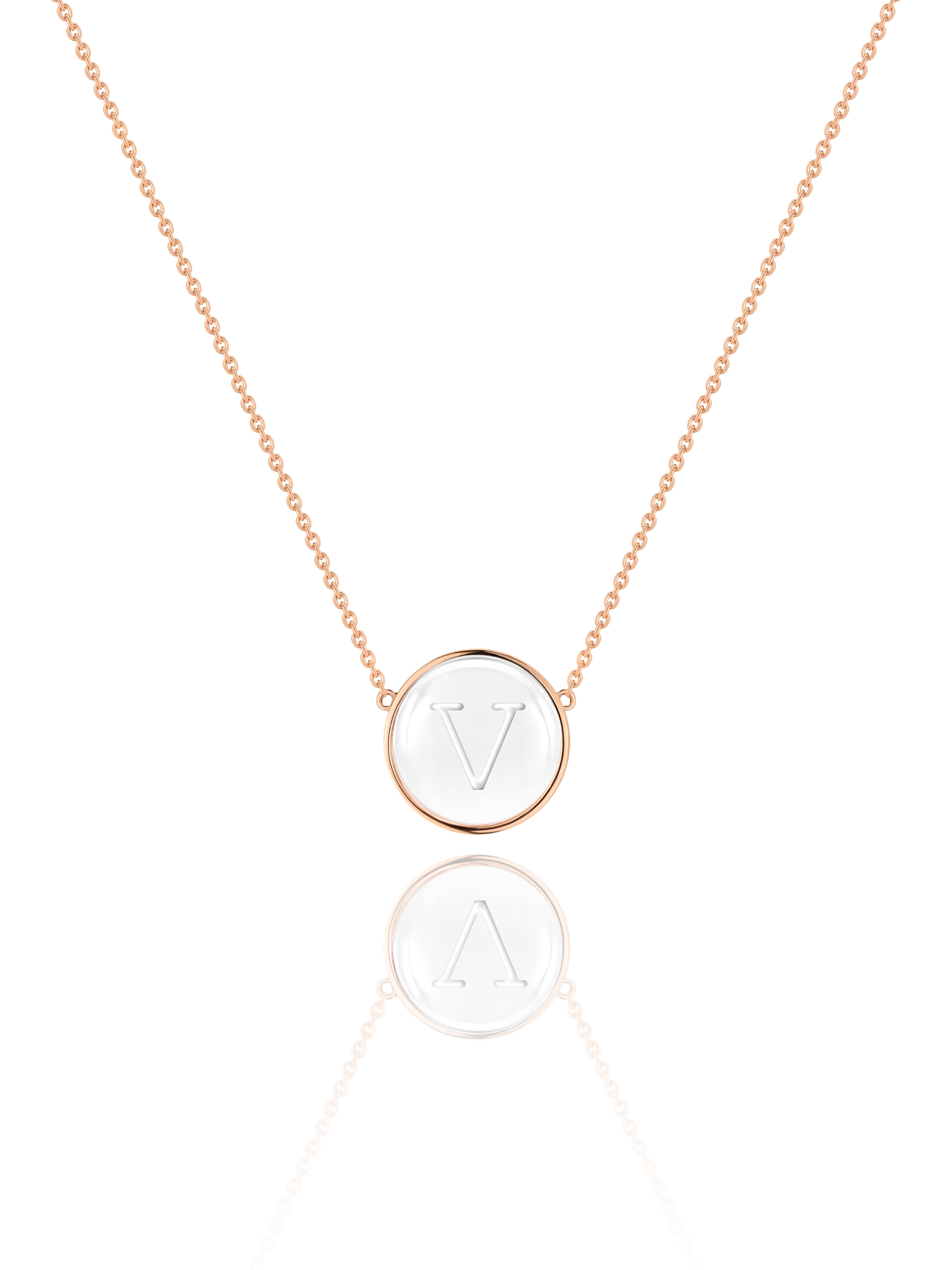 Rose gold necklace with letter V pendant with rock crystal 5.97 ct.