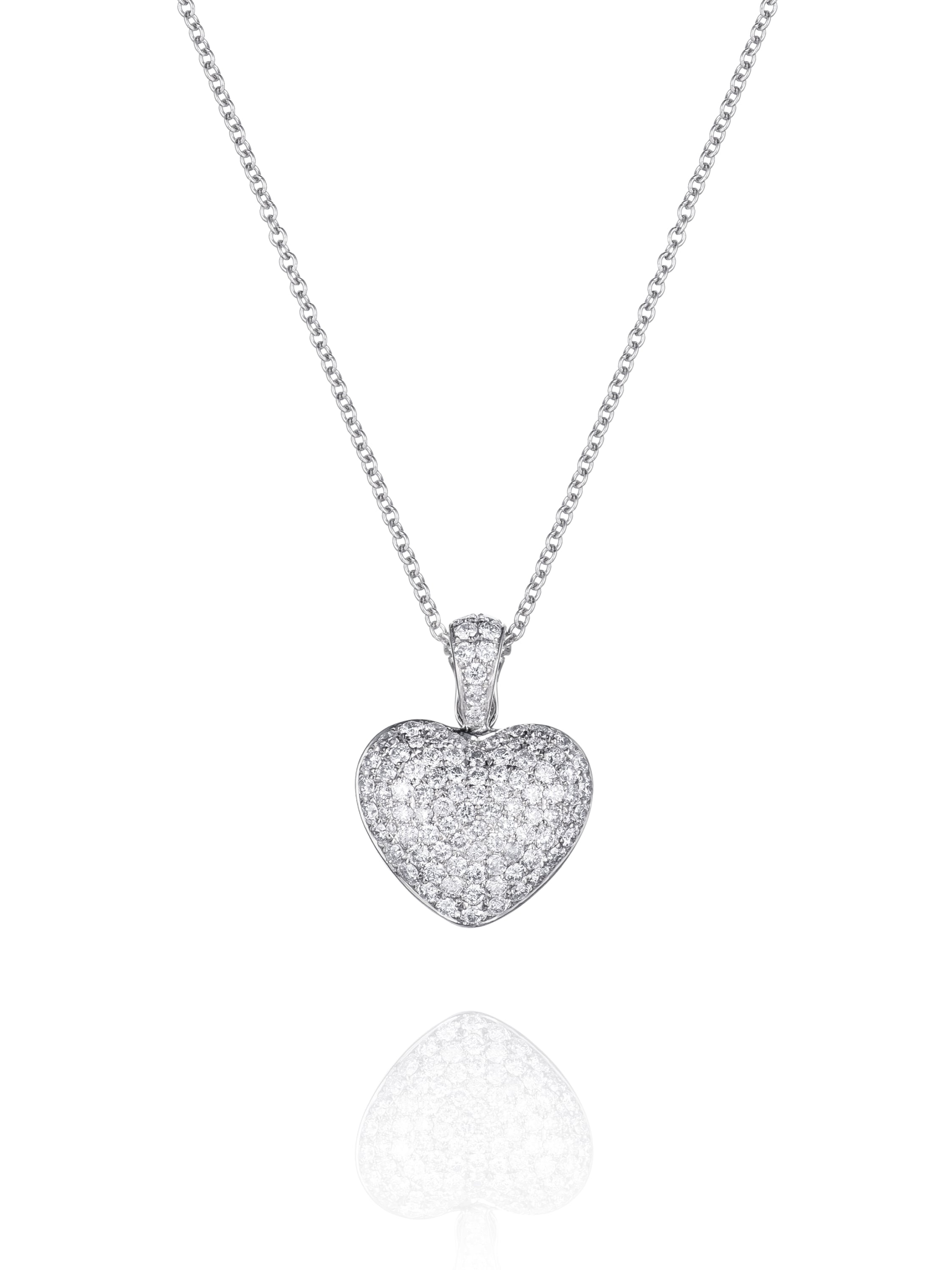 Necklace with a heart-shaped pendant in white gold and 111 round diamonds with a total weight of 1.10 ct.