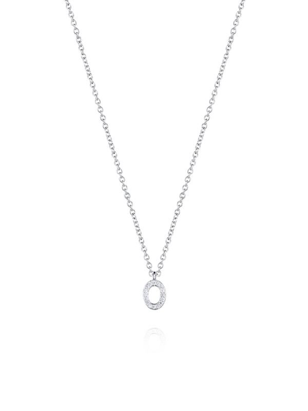 Necklace with a pendant in the shape of the letter "O" in white gold with 16 round brilliant-cut diamonds with a total weight of 0.06 ct.