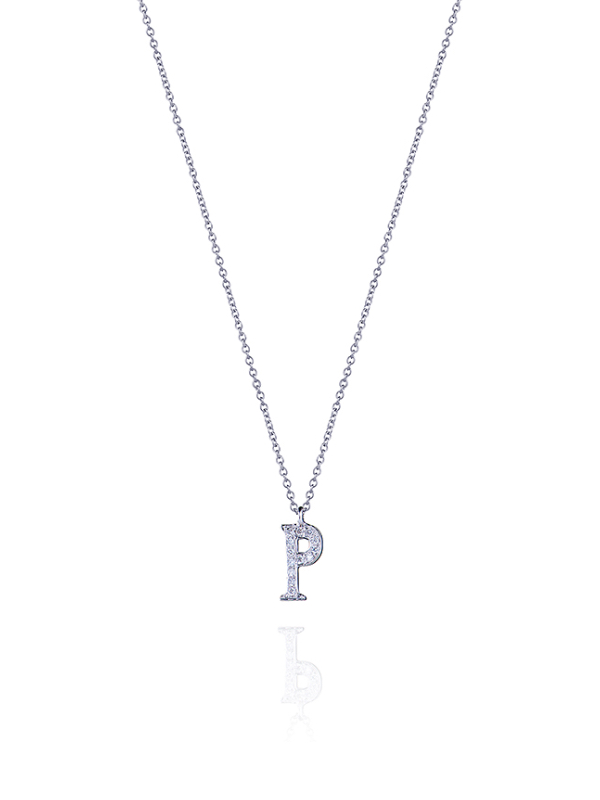 White Gold & Diamonds Letter "P" Necklace