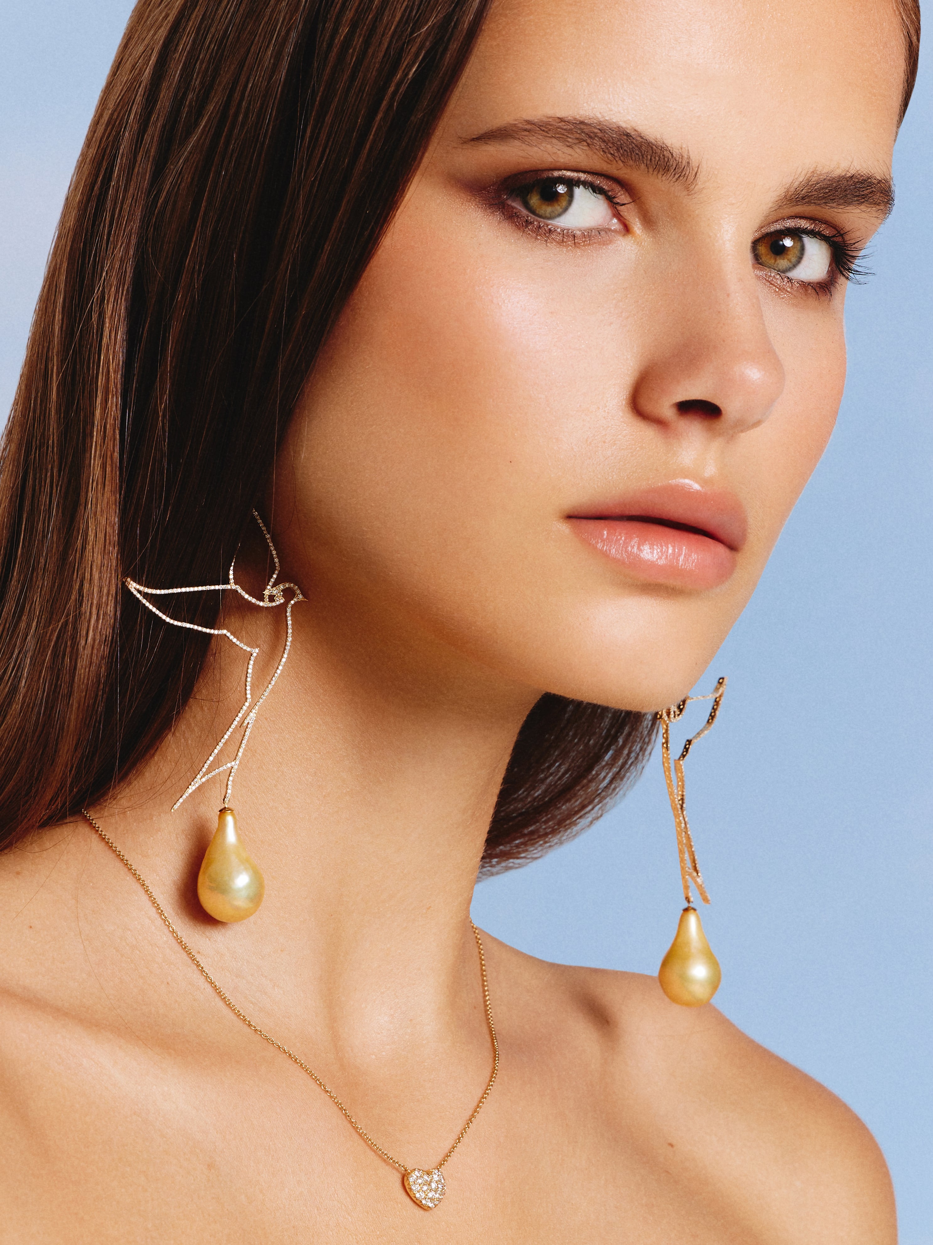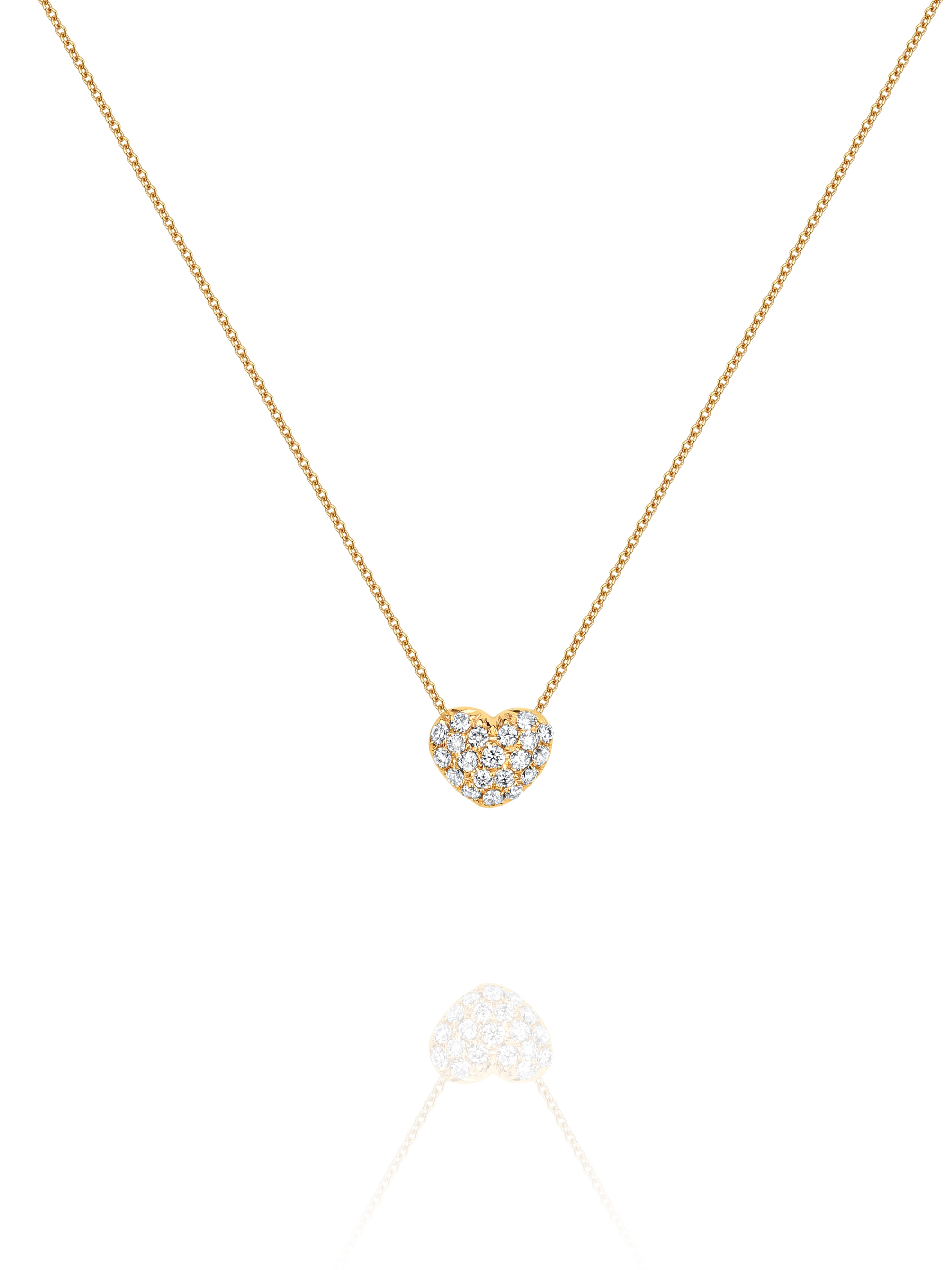Necklace with a heart-shaped pendant in 18K yellow gold with 20 round-cut diamonds with a total weight of 0.62 ct.