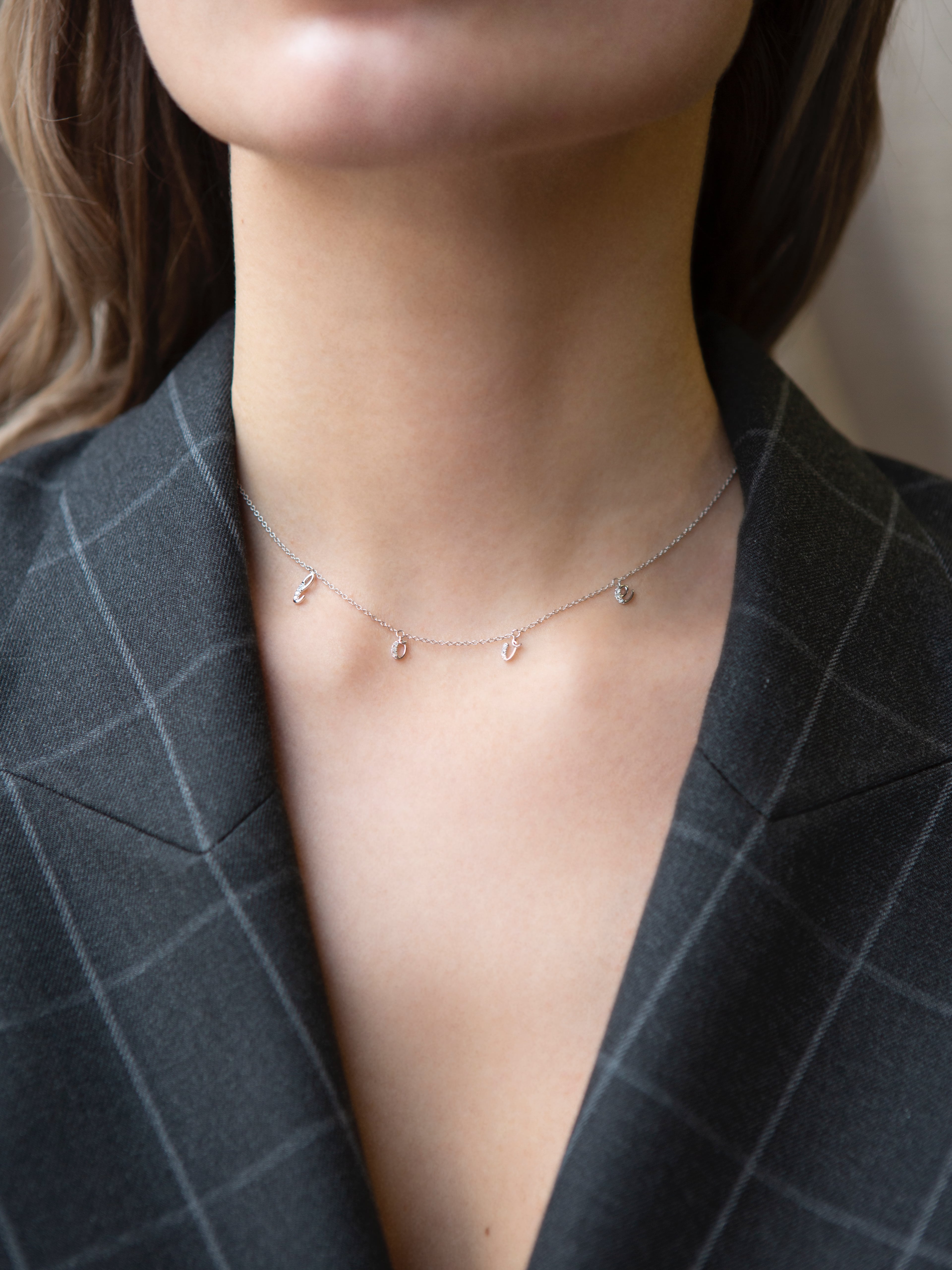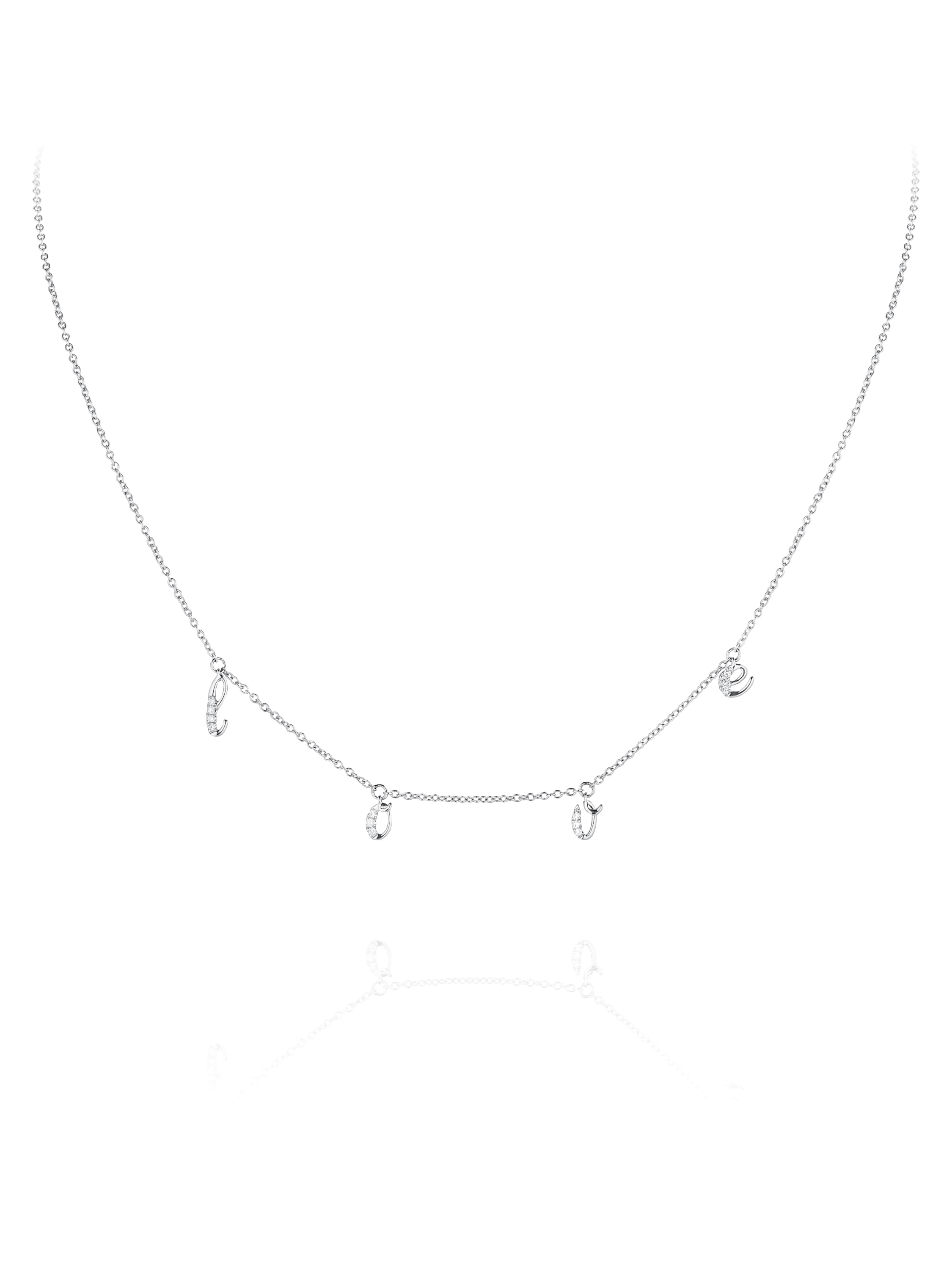 Necklace with "Love" pendants made of white gold and 13 round-cut diamonds with a total weight of 0.06 ct.