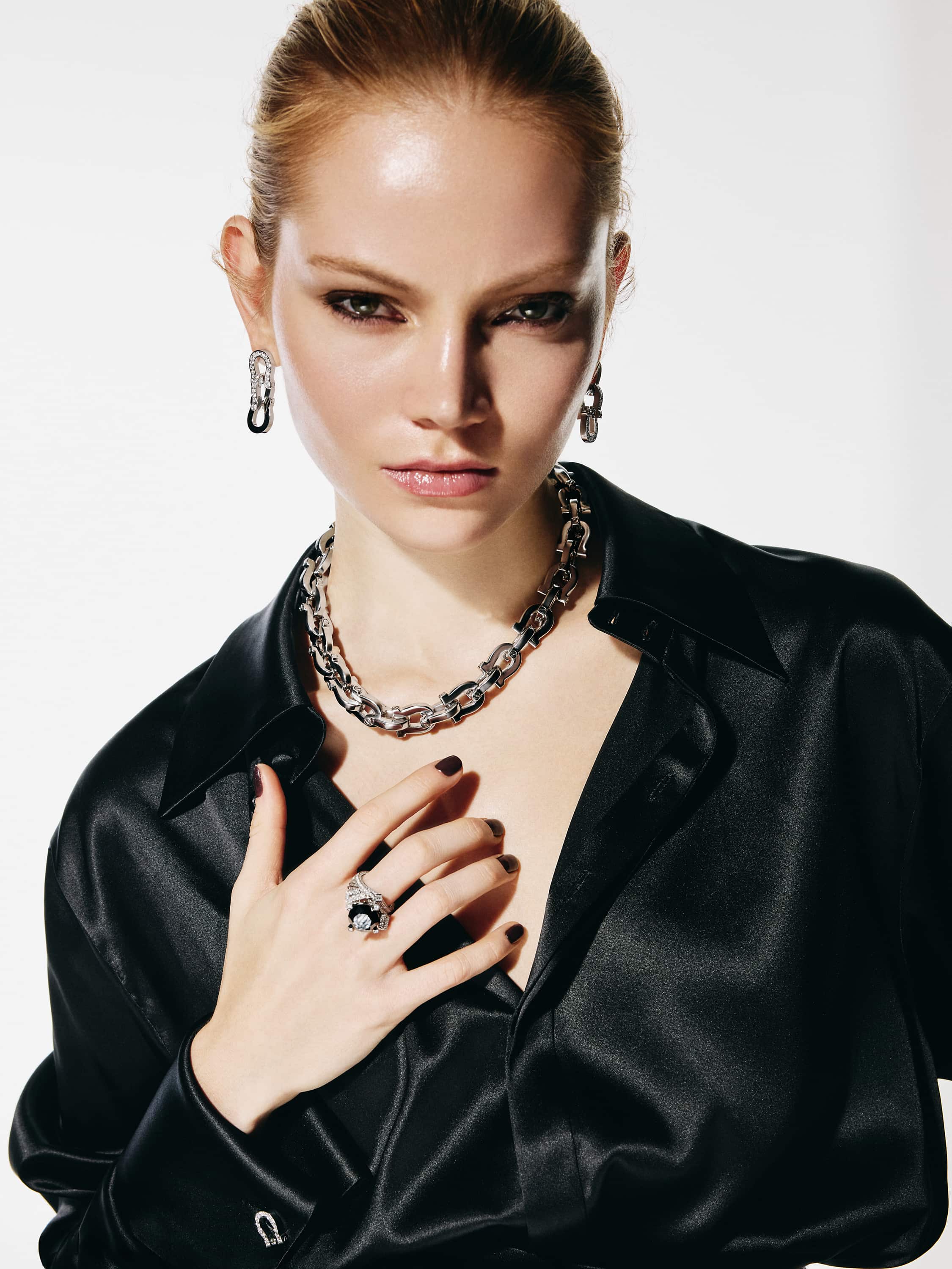 Chain necklace in 18K white gold.