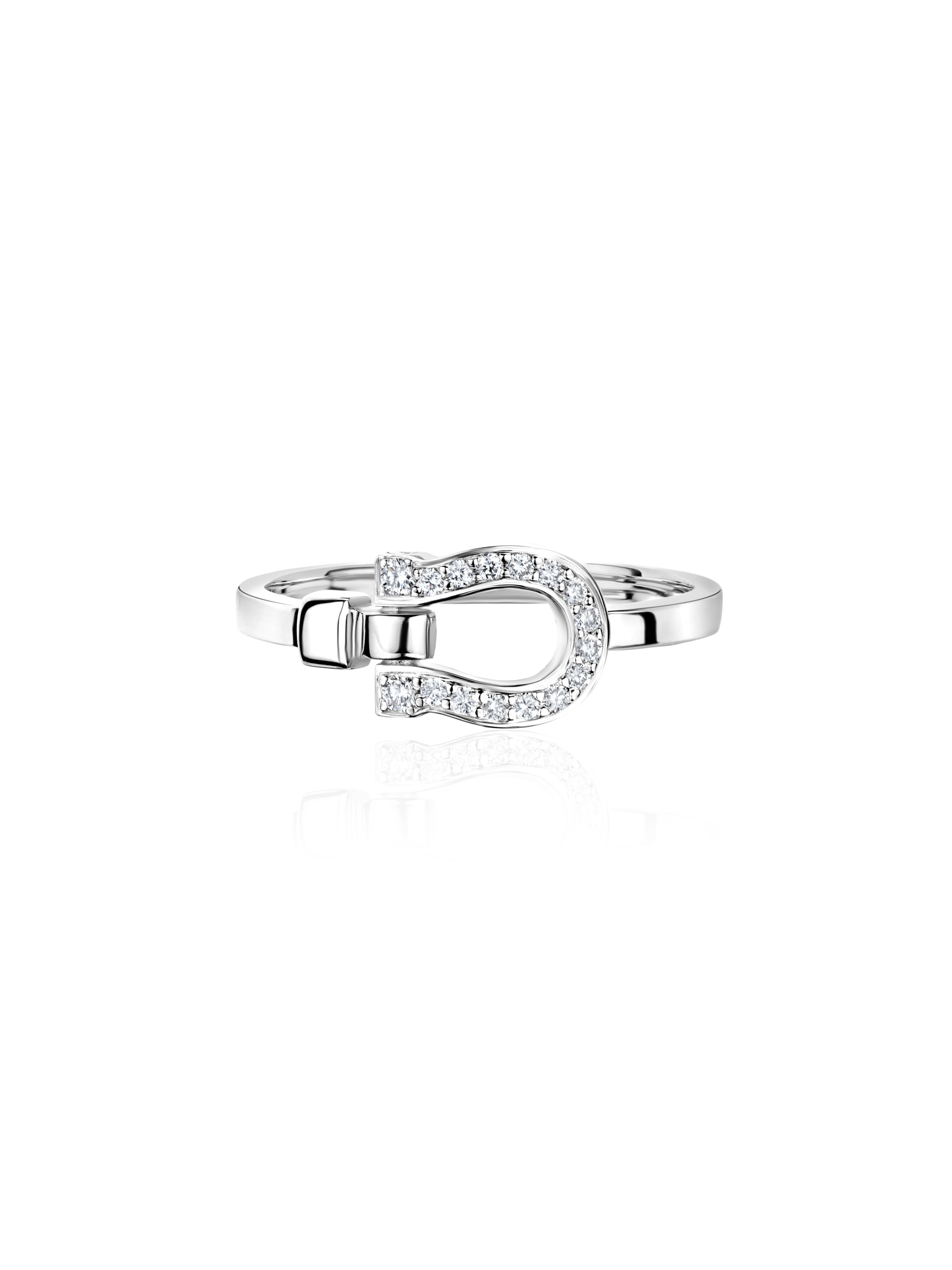 White gold horseshoe-shaped ring with 16 round diamonds 0.08 ct