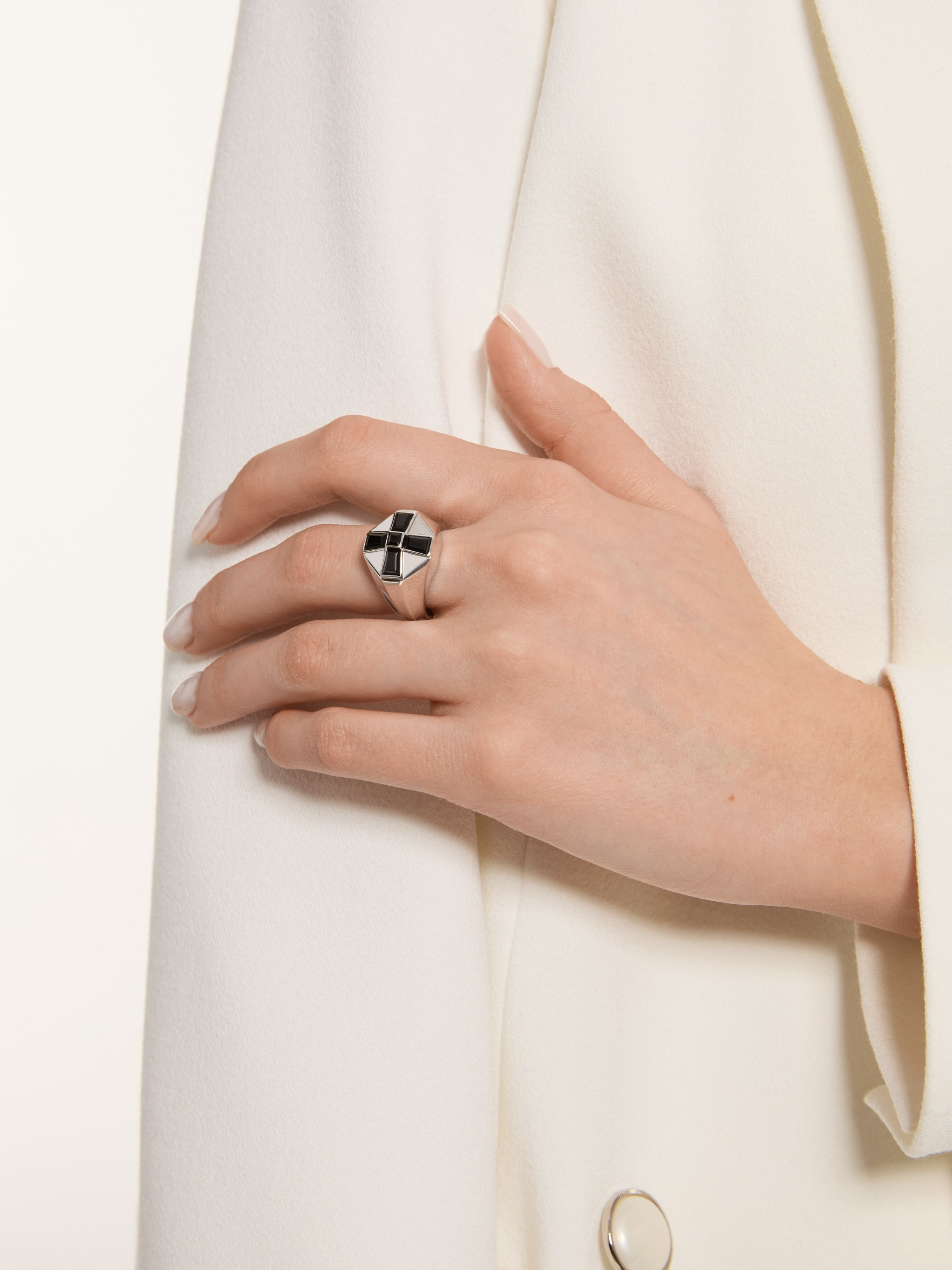 White gold ring with 5 black tourmalines weighing 1.56 ct.