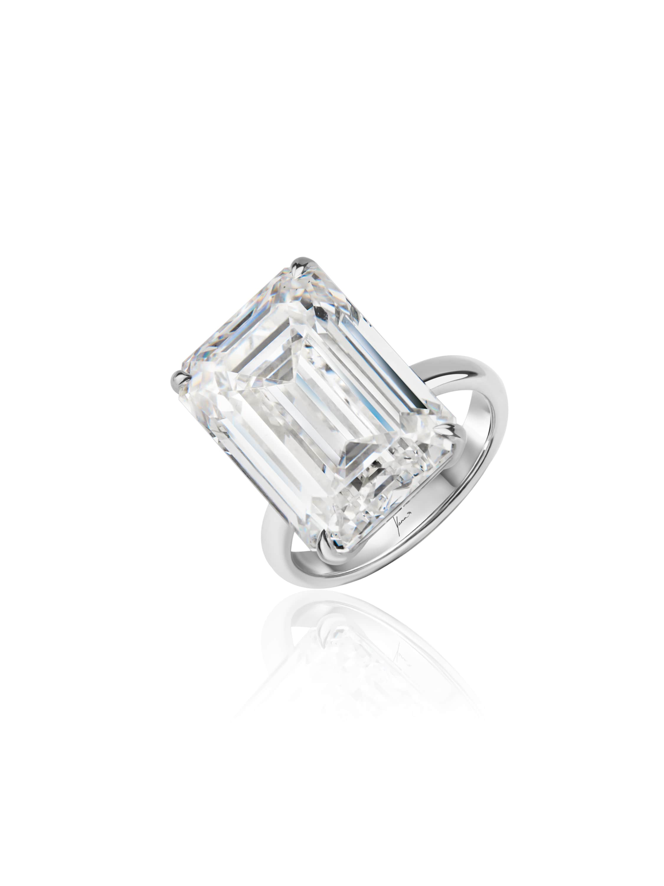 White gold ring with laboratory-grown octagon-cut diamond 18.41 ct F/VS 2.