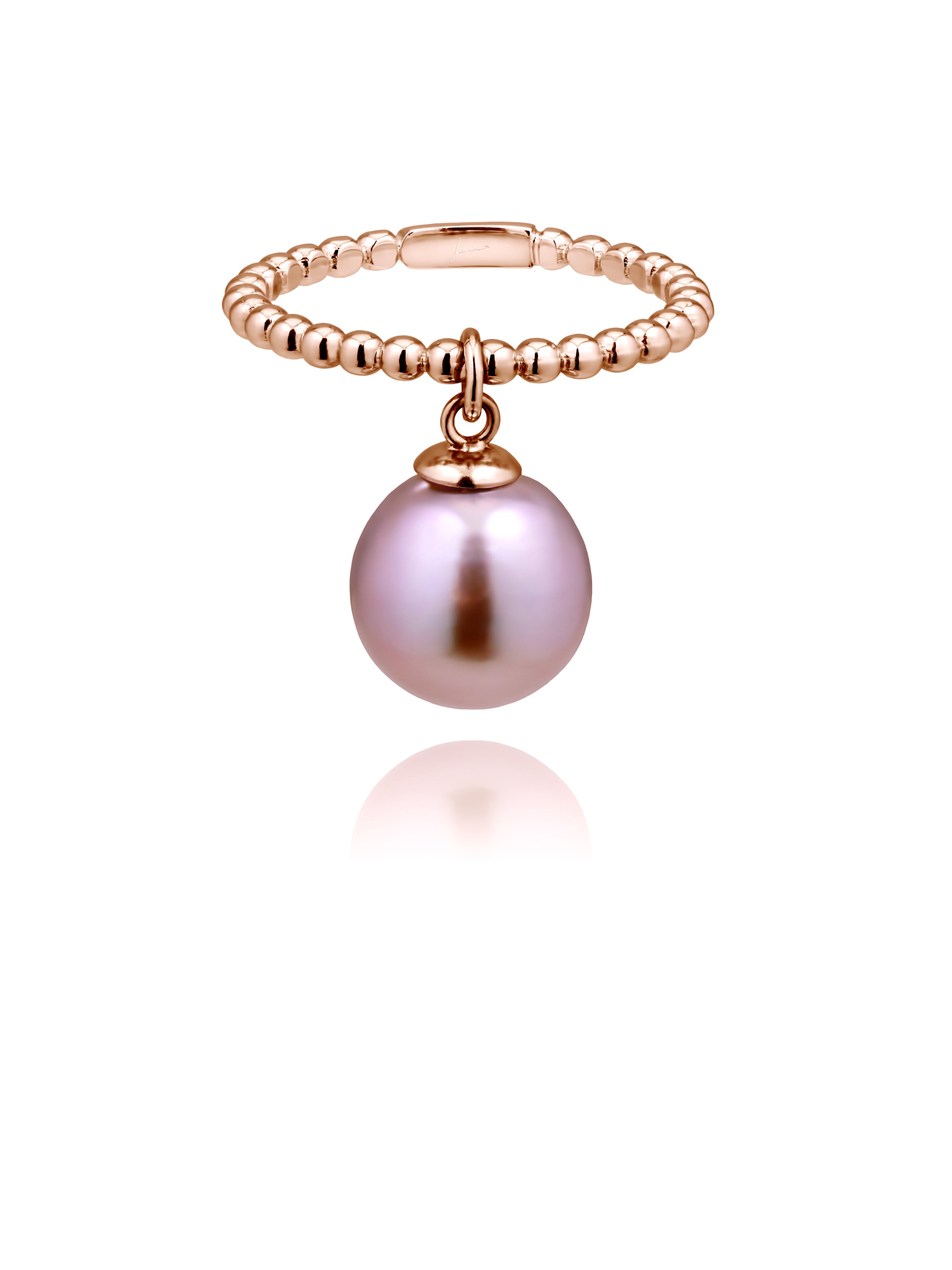 Rose gold ring with a pearl pendant with a diameter of 9 mm.