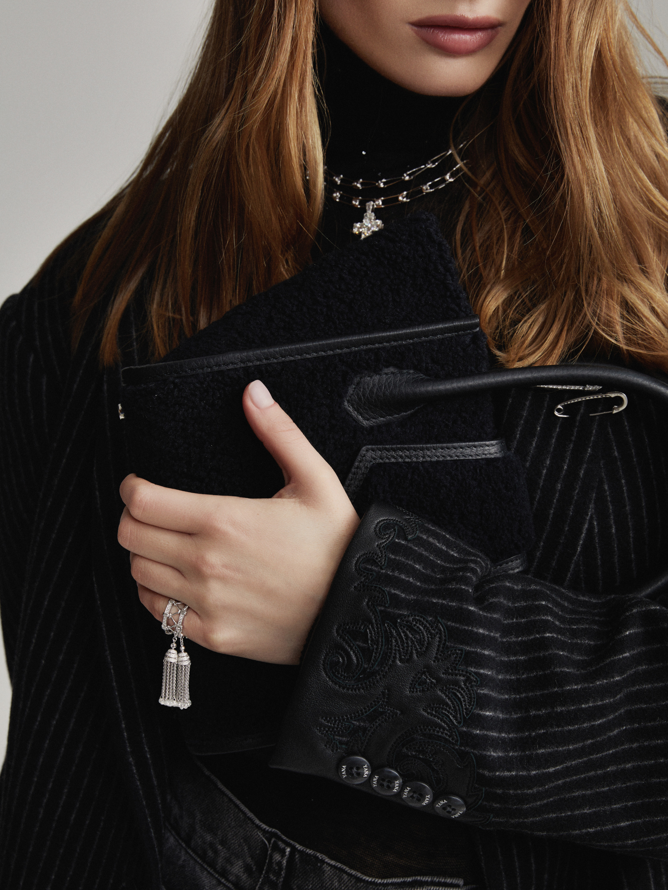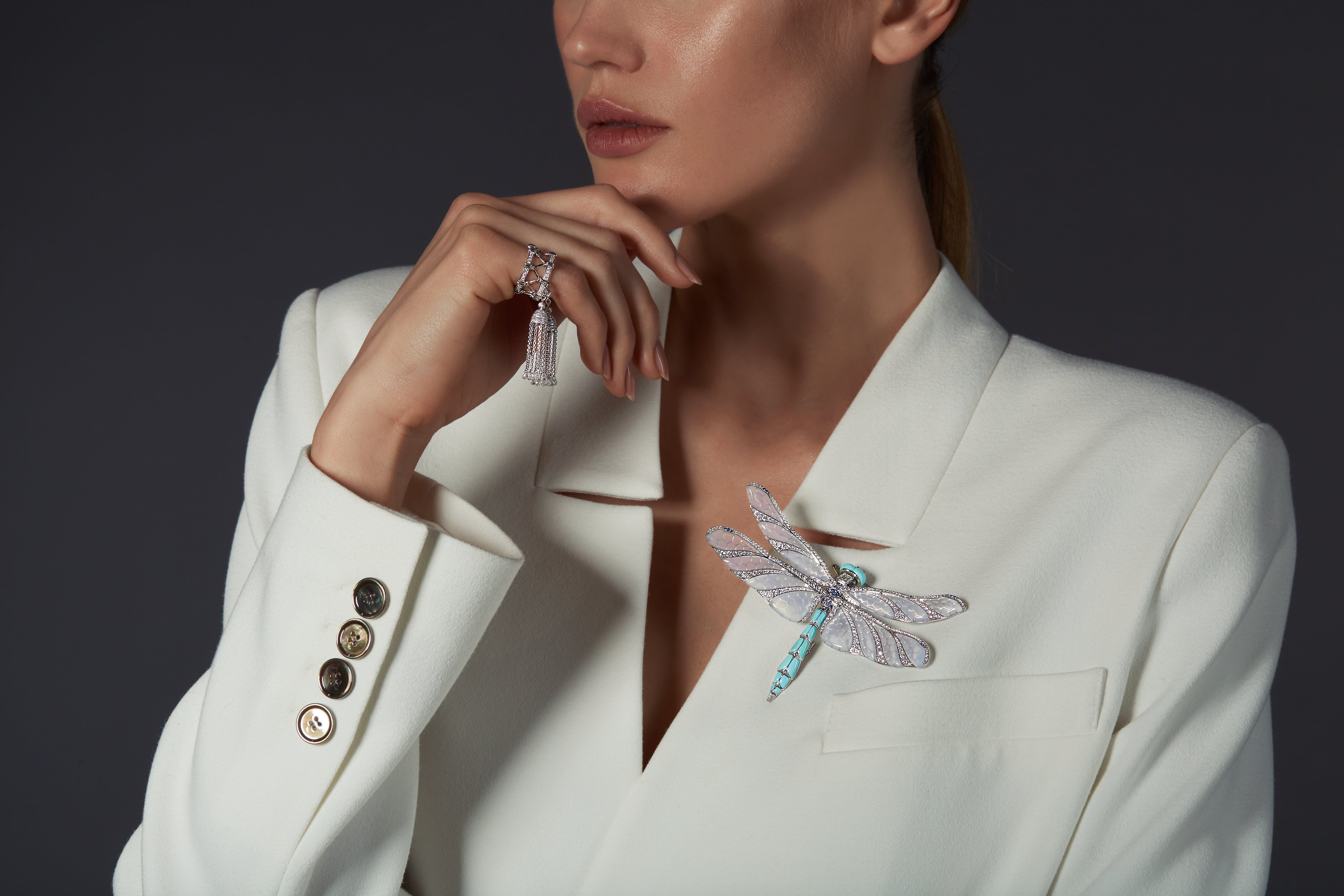 Brush ring made of white gold with 30 briolettes with a total weight of 2.88 ct and 145 round diamonds with a total weight of 0.76 ct.