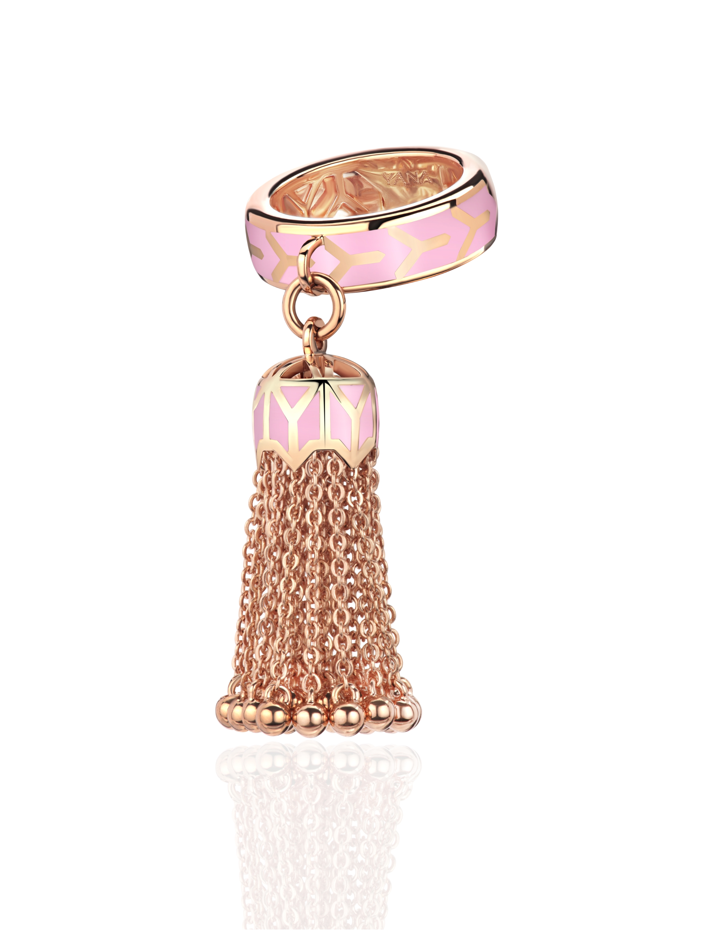Tassel ring in rose gold with Sakura-colored enamel