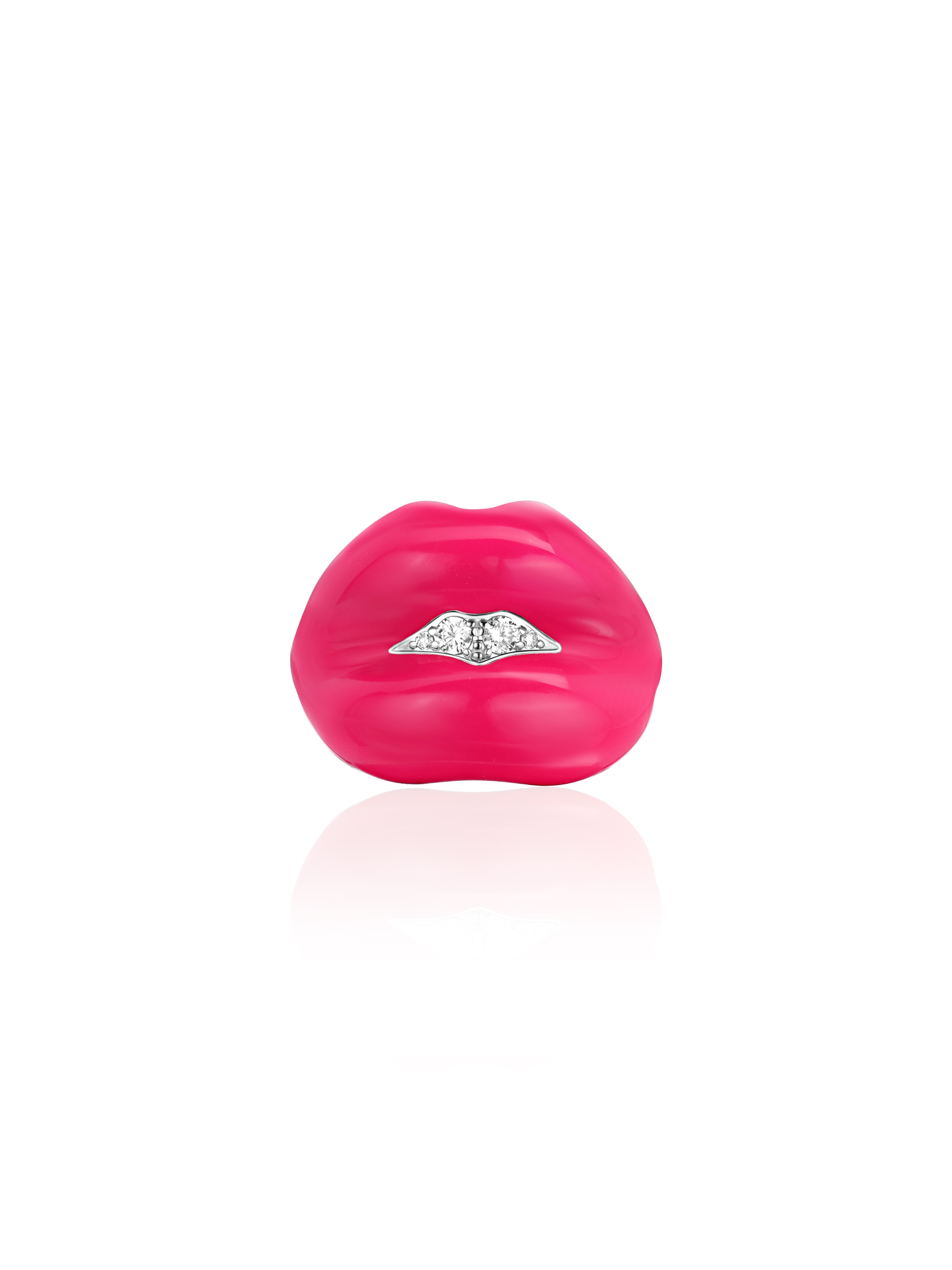 Lip-shaped ring with pink enamel and LG diamonds
