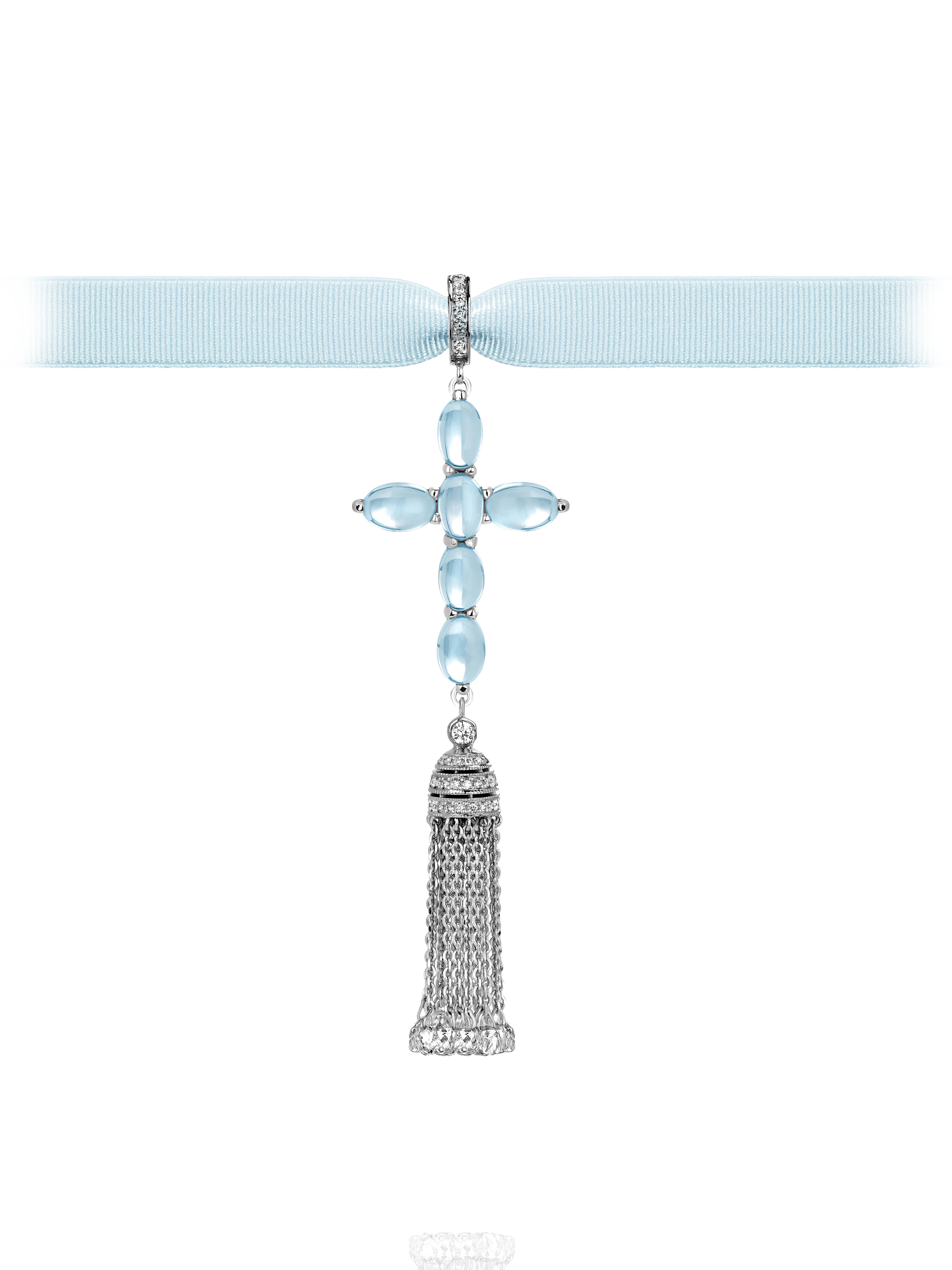White Gold, Diamonds & Topaz Cross Tassel Pendant