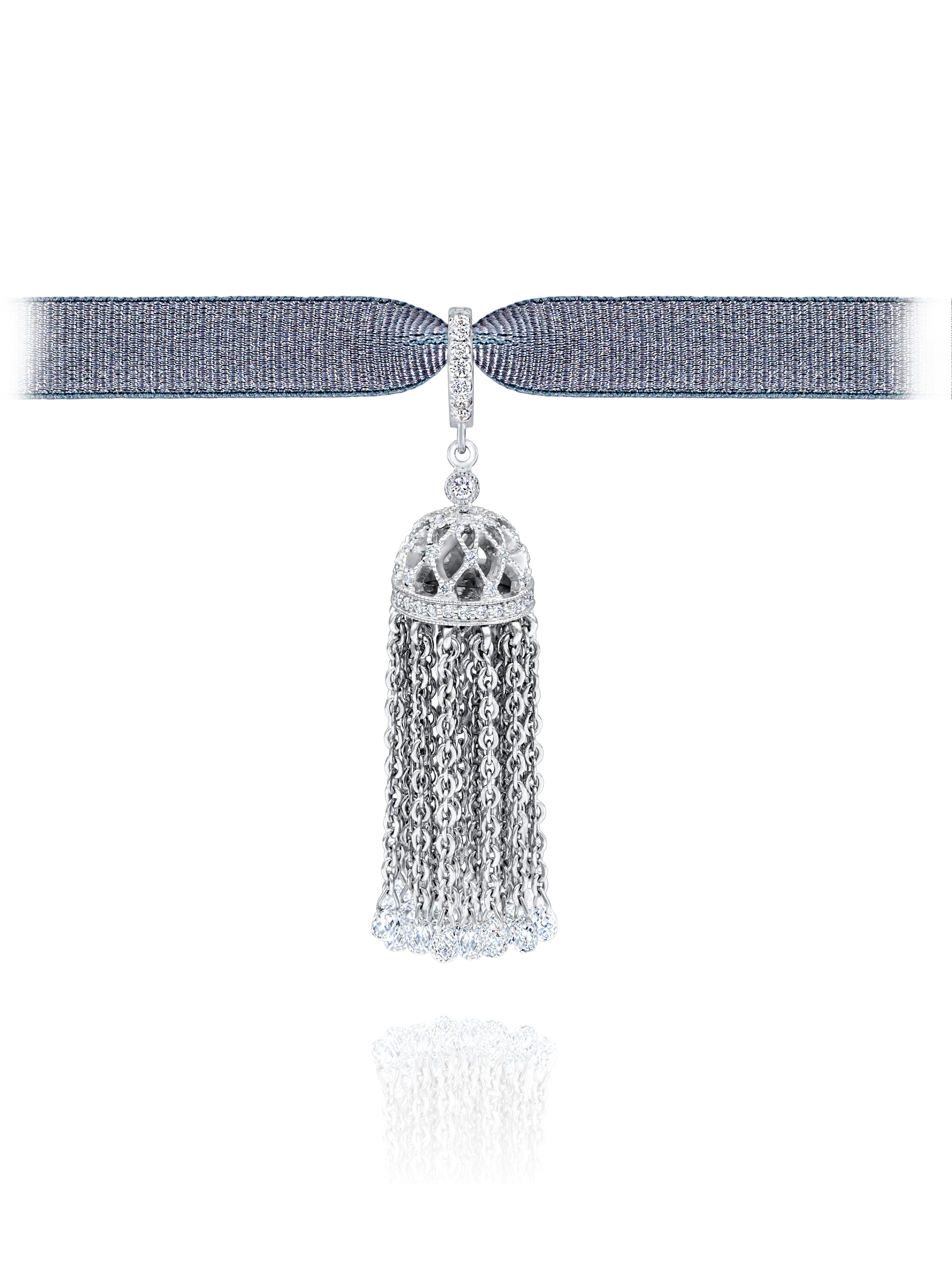Tassel pendant in white gold with 63 round-cut diamonds with a total weight of 0.25 ct and 25 briolette-cut diamonds with a total weight of 2.31 ct.