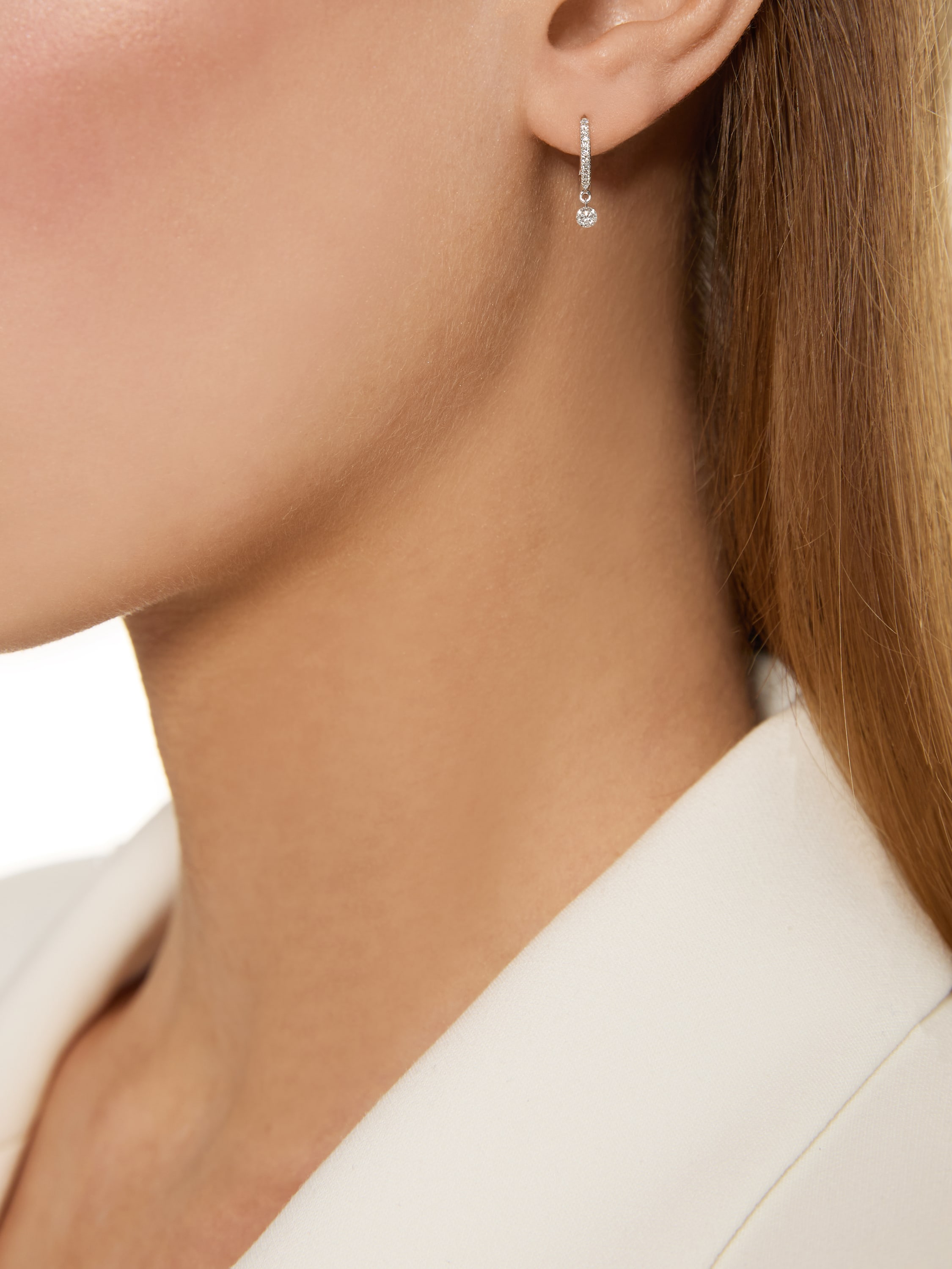 Small white gold hoops with 2 round diamonds weighing 0.20 ct and 22 round diamonds weighing 0.08 ct.