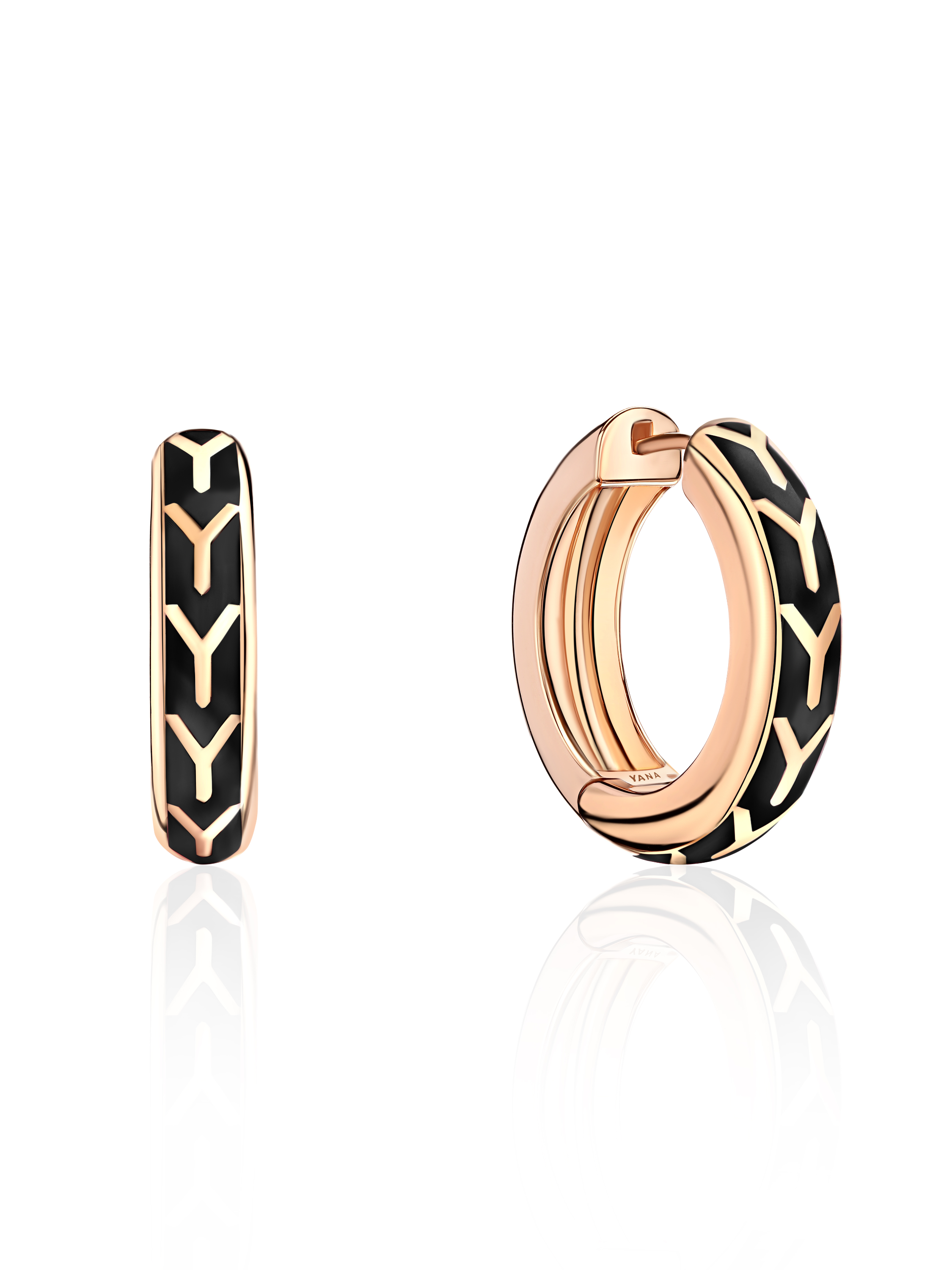 Small hoops in rose gold with black enamel. Diameter: 2.5 cm.