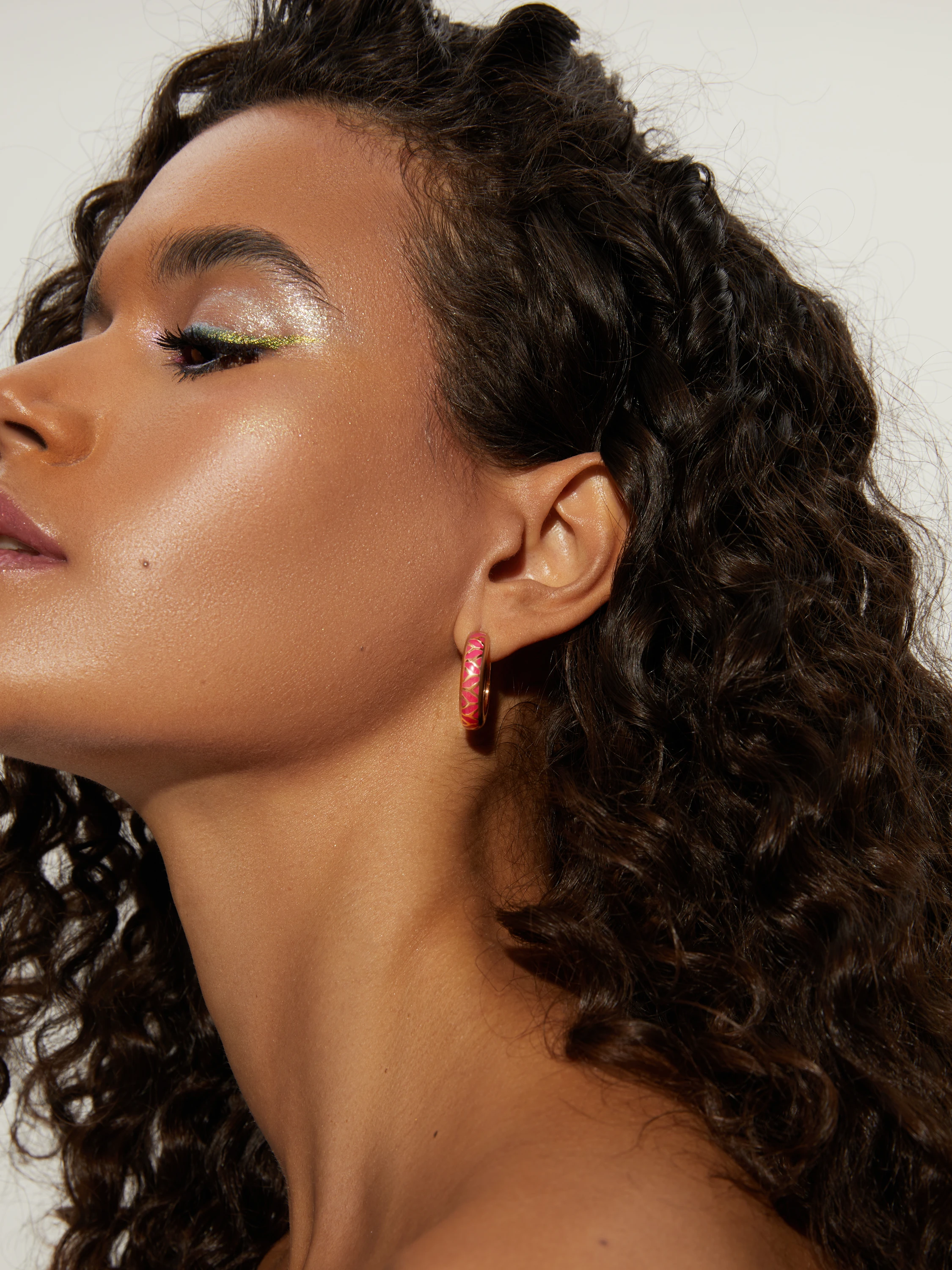 Small rose gold hoops with pink enamel