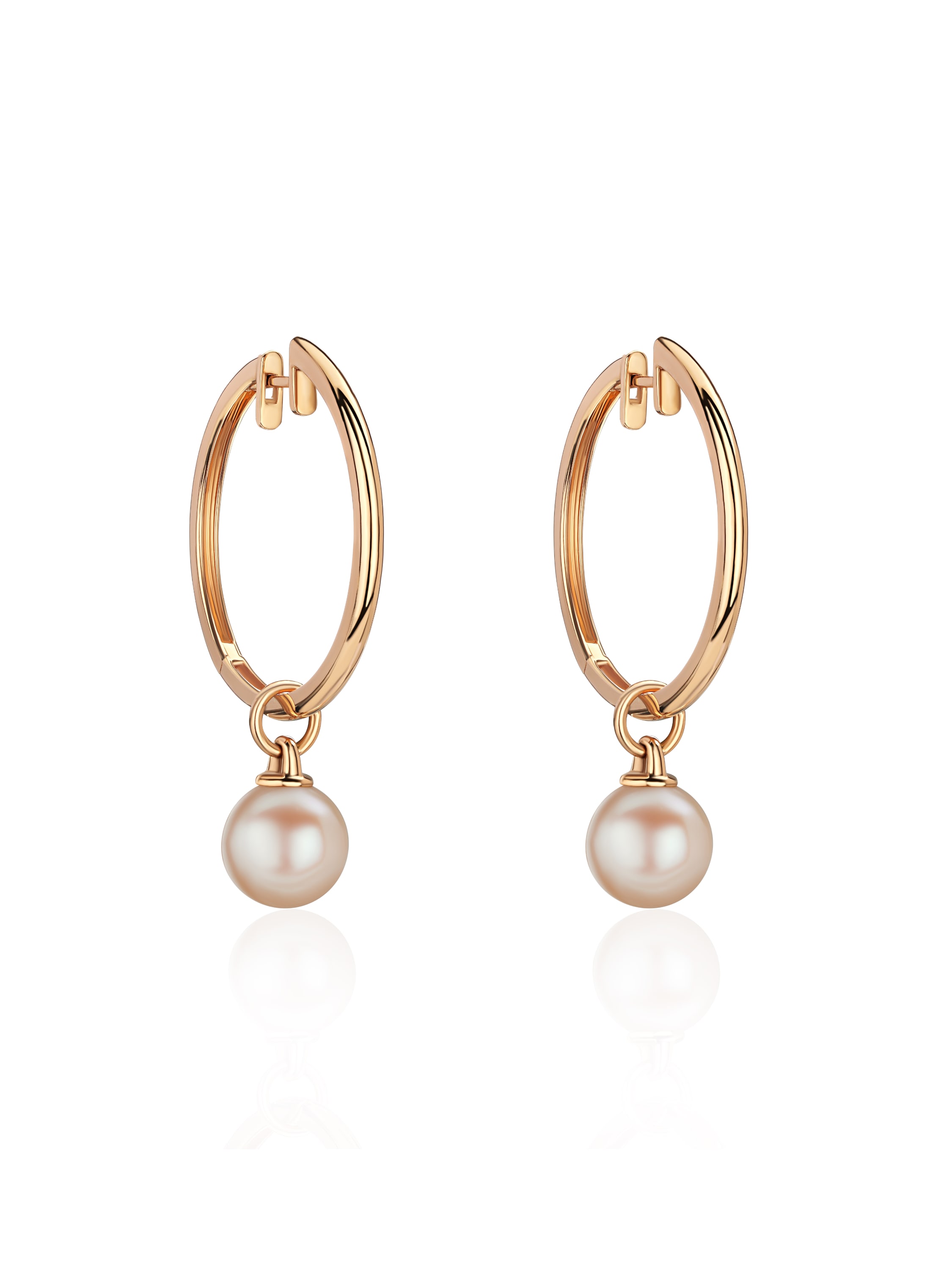 Rose gold pendant for hoops with 1 pearl bead d 10.0 mm 1.34 g.