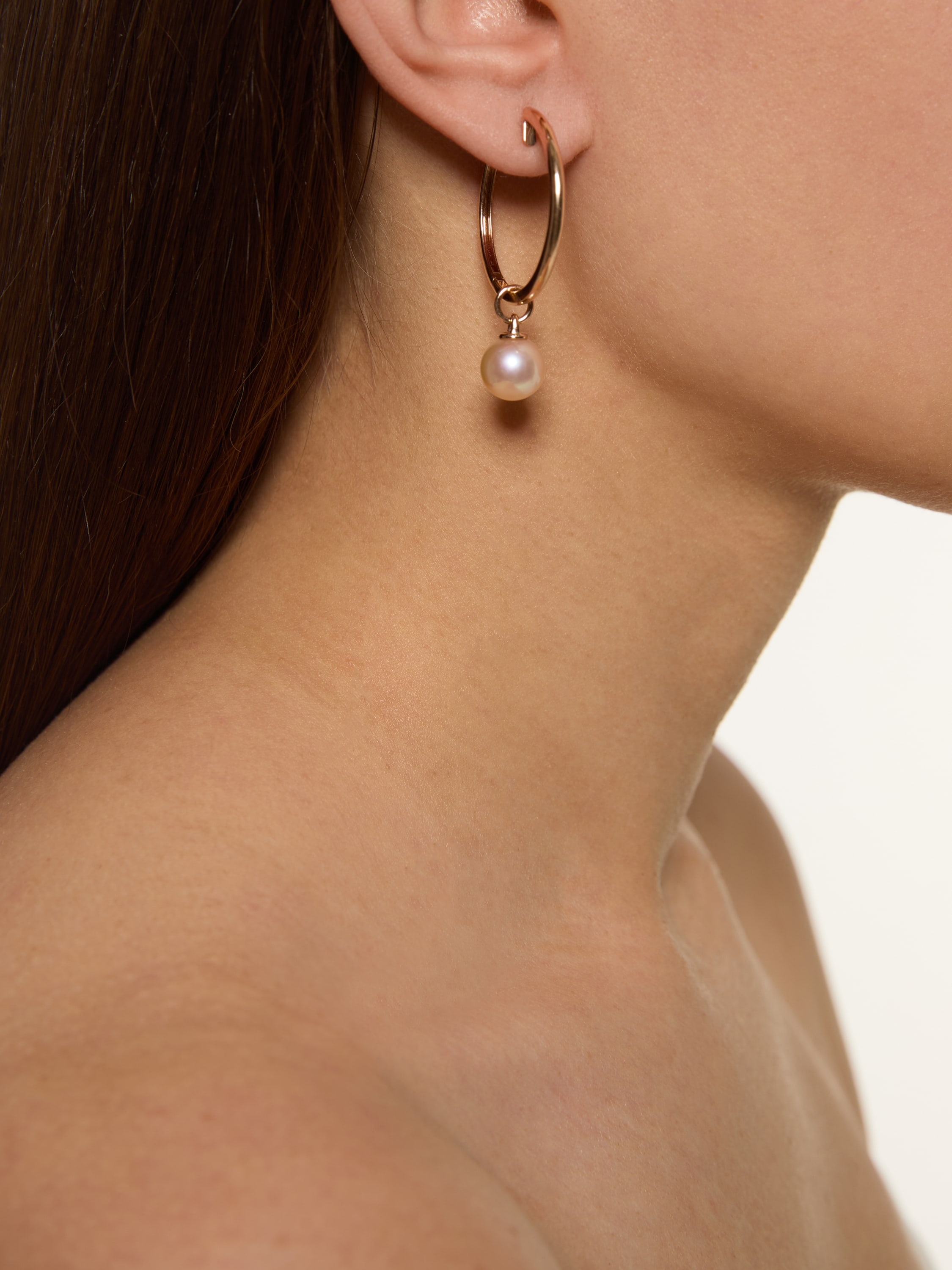 Rose gold hoop pendant with pearl bead