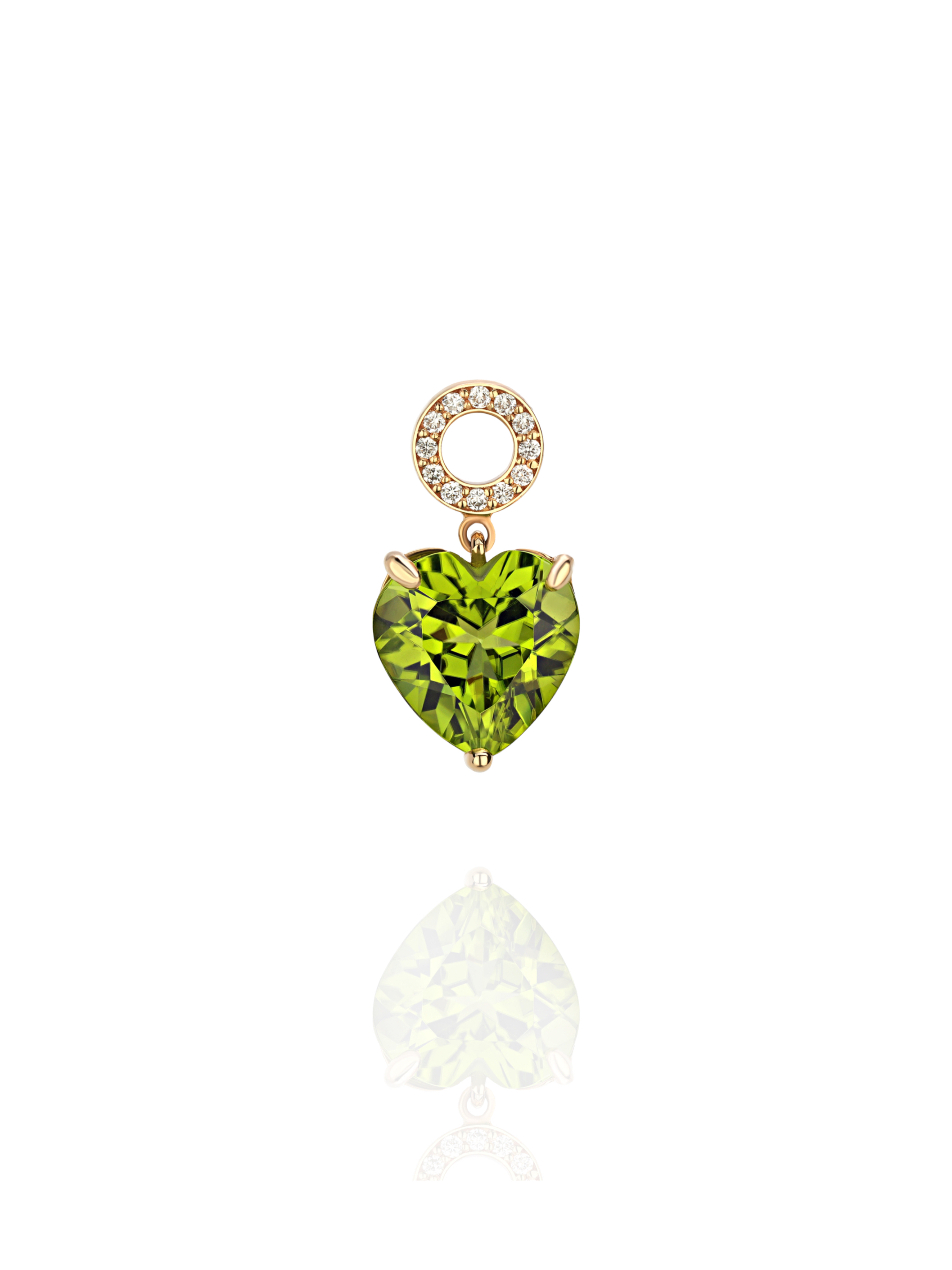 Gold hoop earring pendant with a heart-cut peridot of 2.61 ct and 12 round-cut diamonds with a total weight of 0.05 ct.