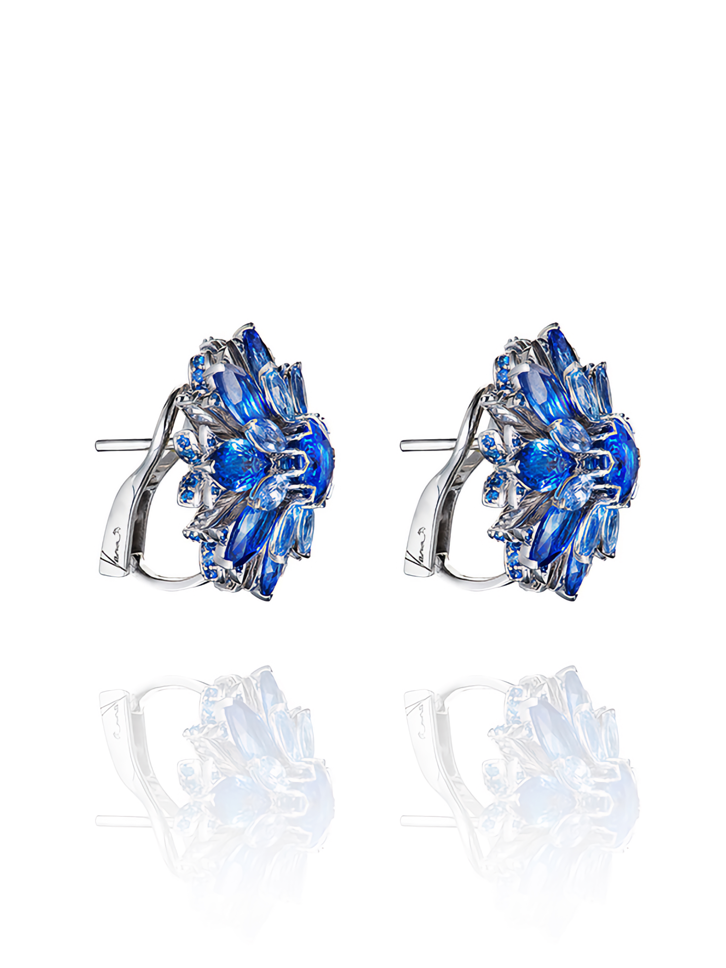 White gold studs with 162 sapphires with a total weight of 16.81 ct.