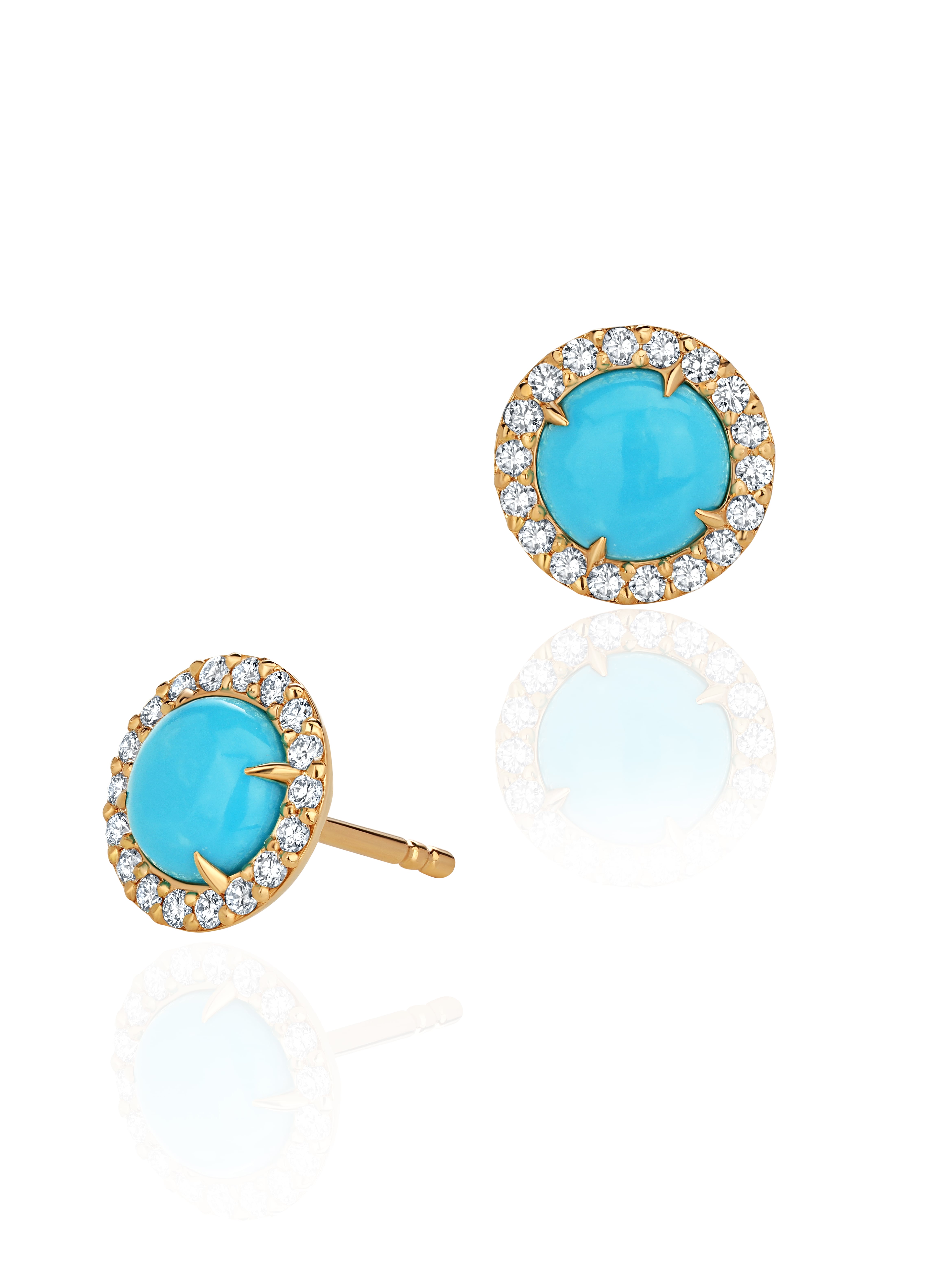 Yellow gold studs, 2 turquoise beads with a total weight of 0.40 g and 36 round-cut diamonds with a total weight of 0.41 ct.