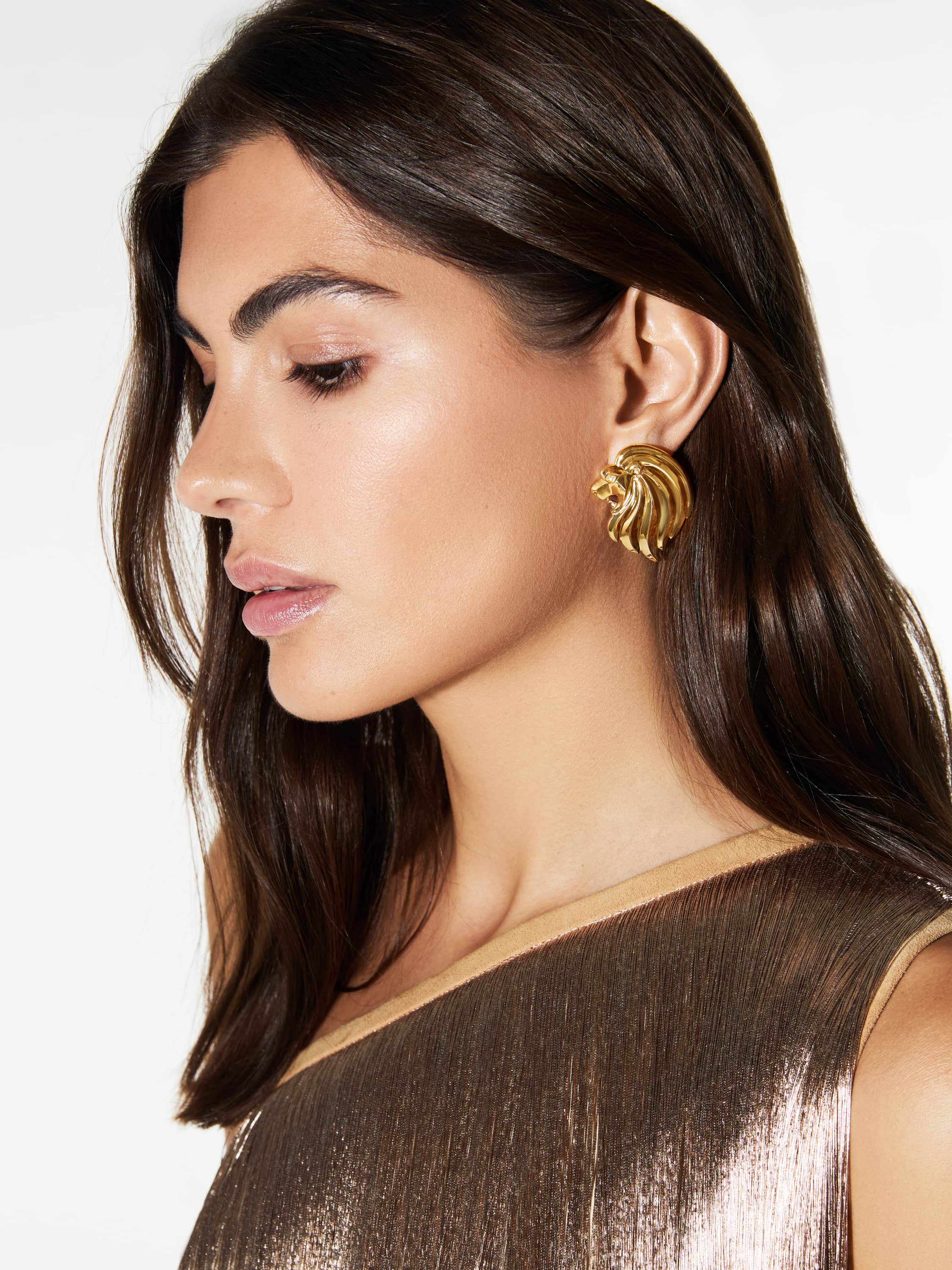 Yellow gold stud earrings with 2 brown diamonds weighing 0.02 ct.