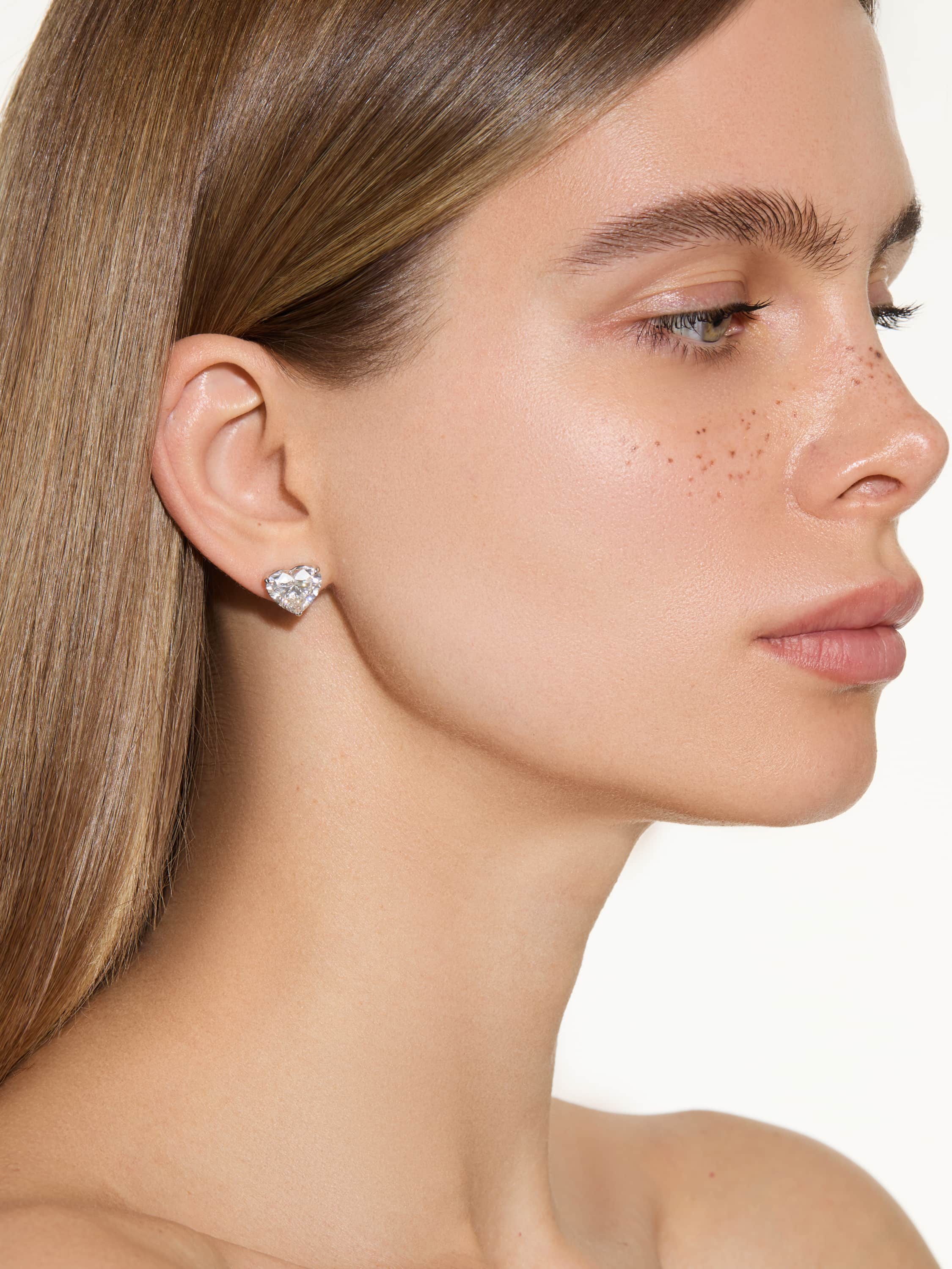 Stud earrings with a lab-grown heart-cut diamond of 1.51 ct E/VS2 and a lab-grown heart-cut diamond of 1.52 ct F/VS1.