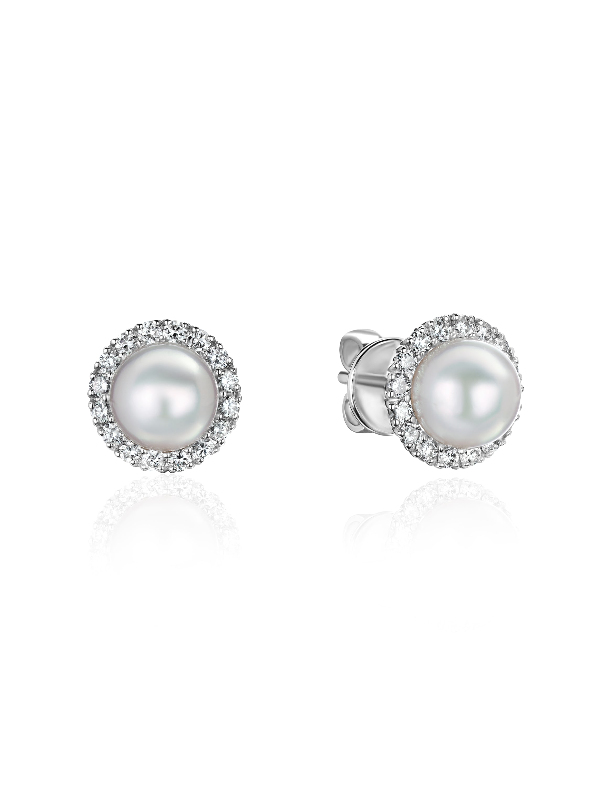 Stud earrings with 2 Akoya pearls d 6.0 mm 0.77 g and 32 round-cut diamonds weighing 57 0.38 ct.