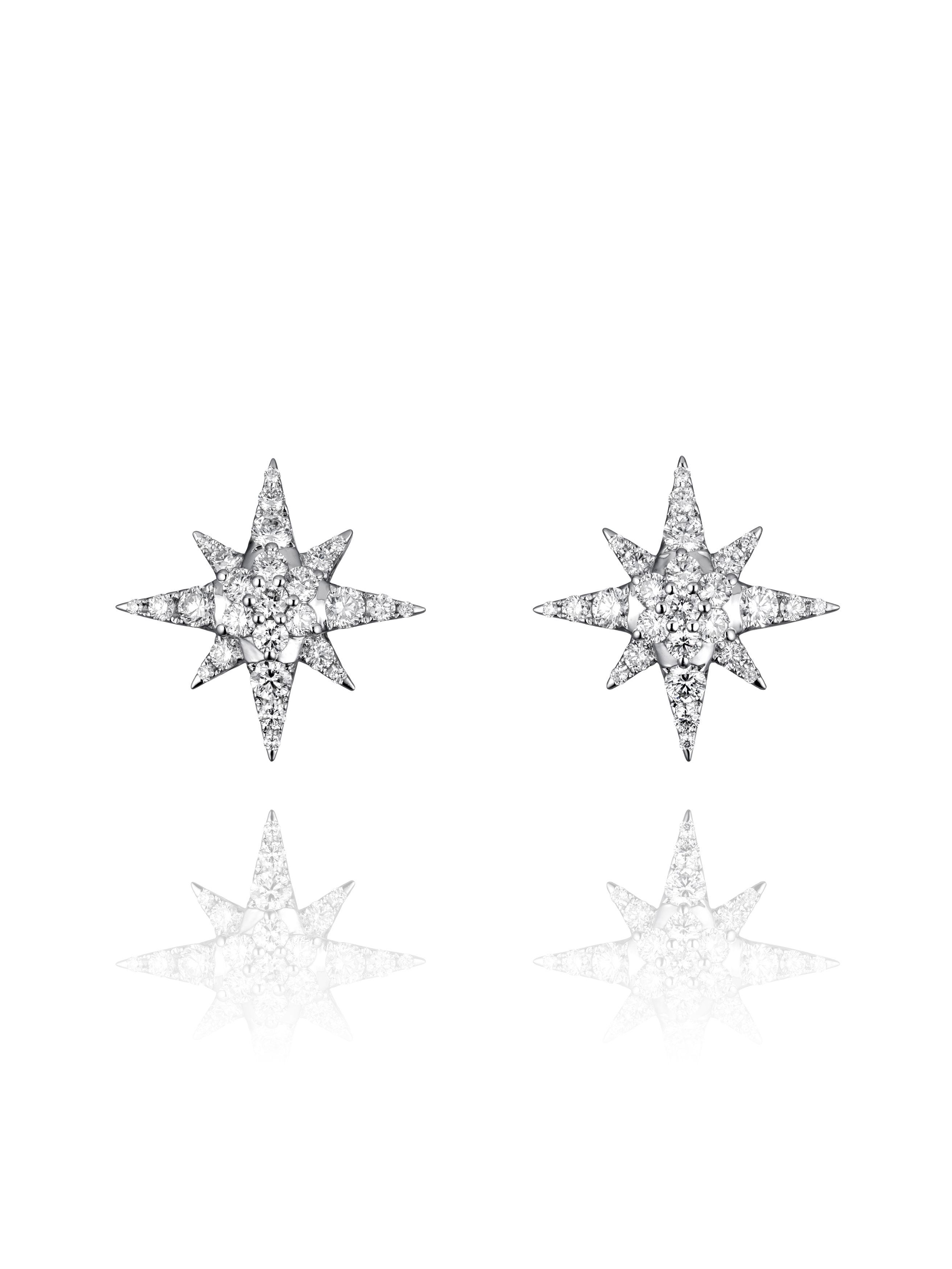 Stud earrings in white gold in the shape of stars, set with 54 round diamonds with a total weight of 0.85 ct.