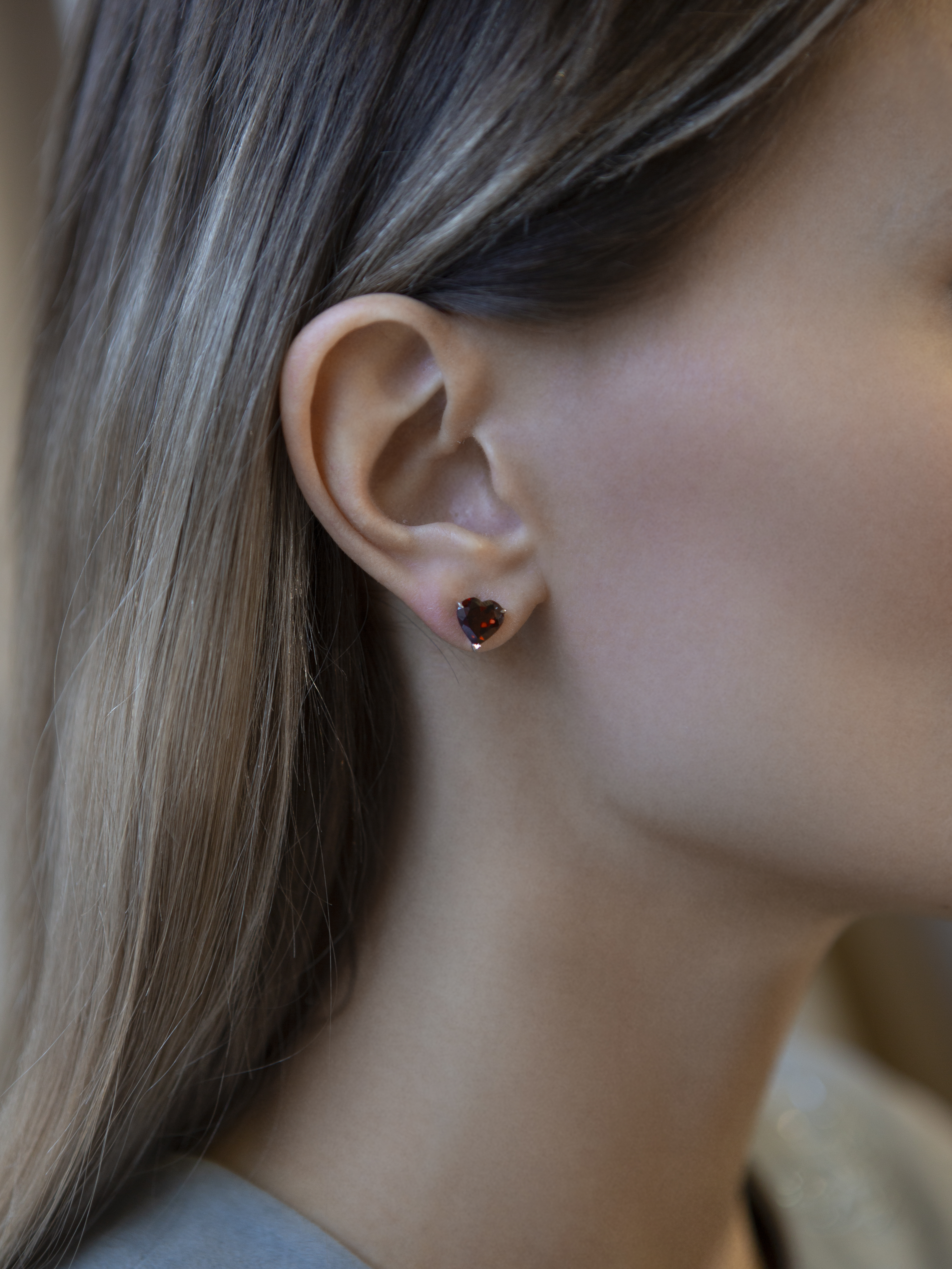 White Gold, Diamonds & Heart-cut Rubies Studs