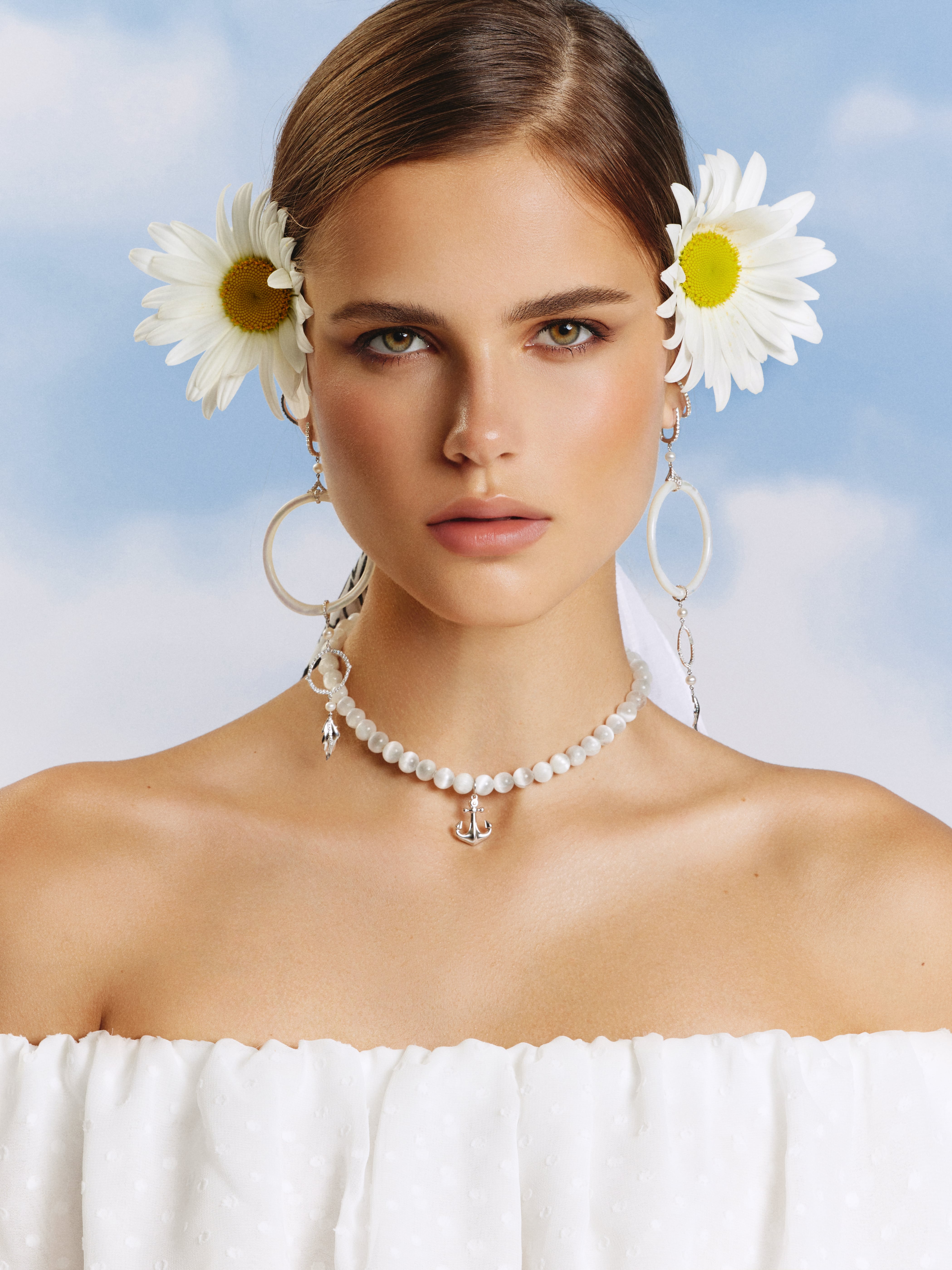 Round Diamond & White Pearl & White Pearl & White Gold Earrings