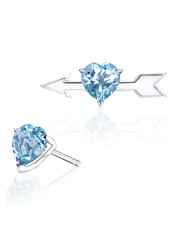White Gold & Heart-cut Topaz Mismatched Studs