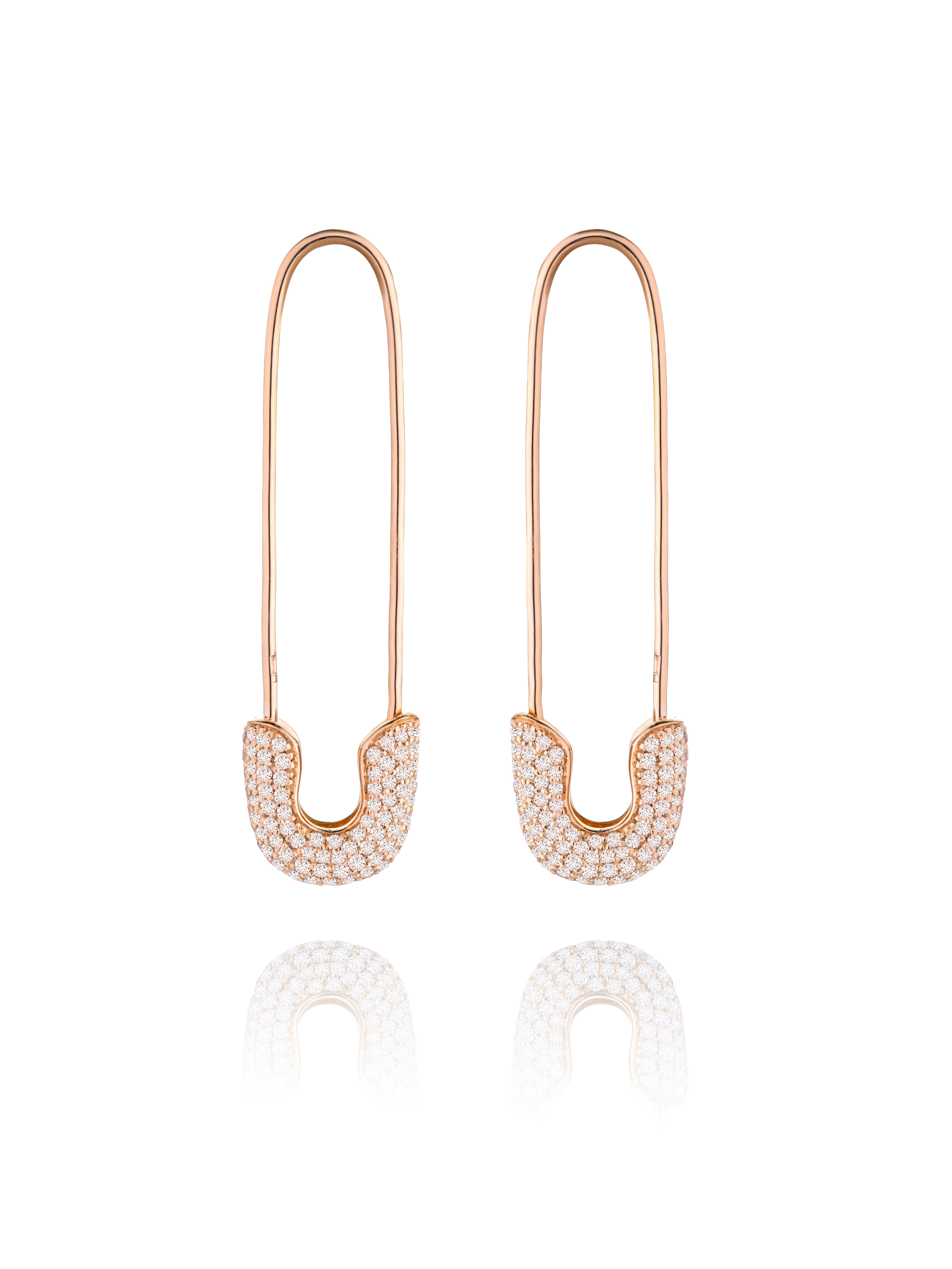 Safety-pin earrings in rose gold with 320 round-cut diamonds with a total weight of 0.99 ct. Item length: 4 cm.
