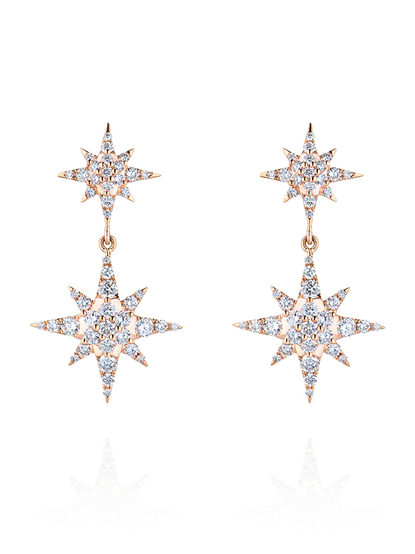 Star-shaped earrings in rose gold and 92 round-cut diamonds with a total weight of 1.13 ct.