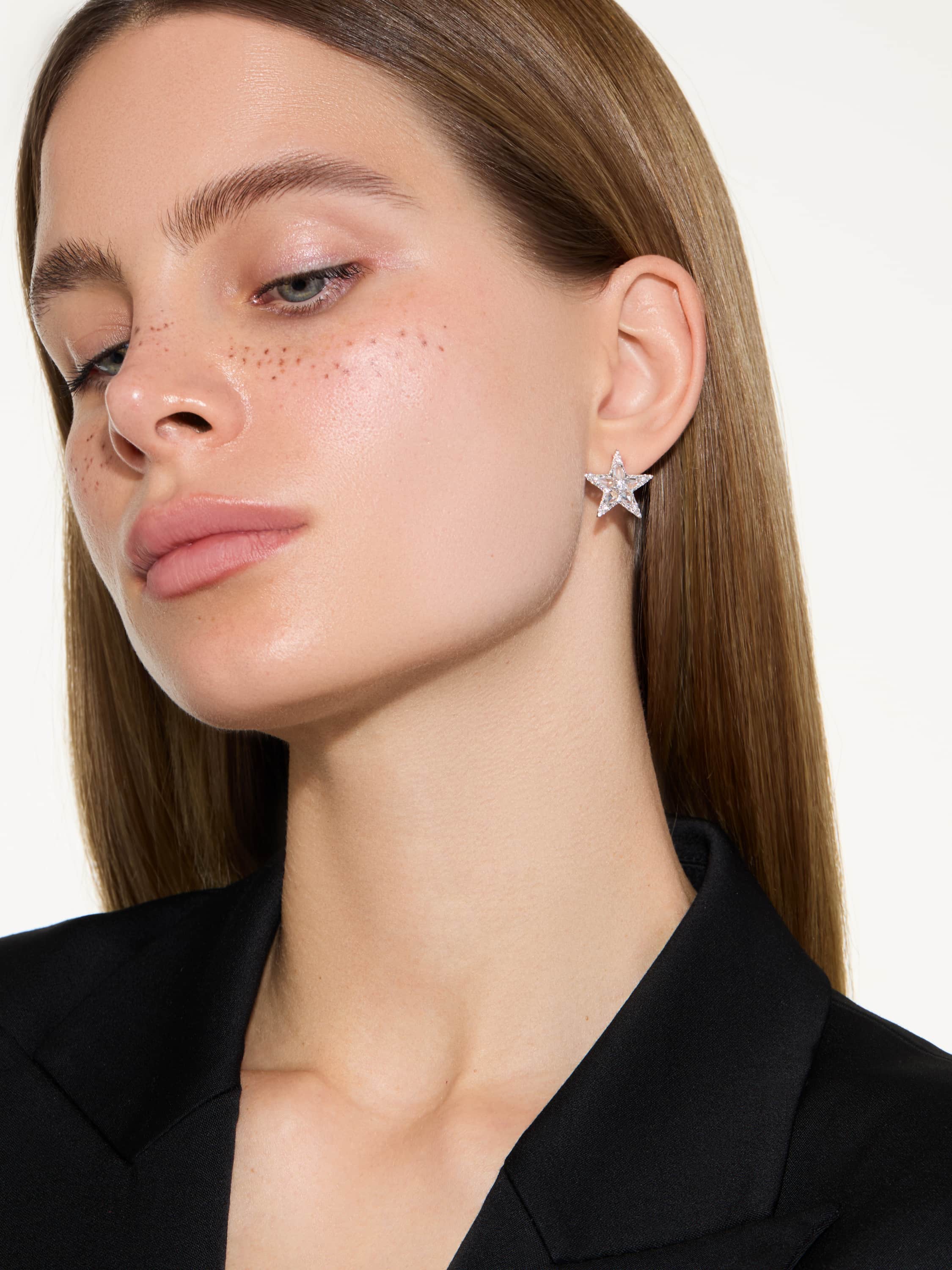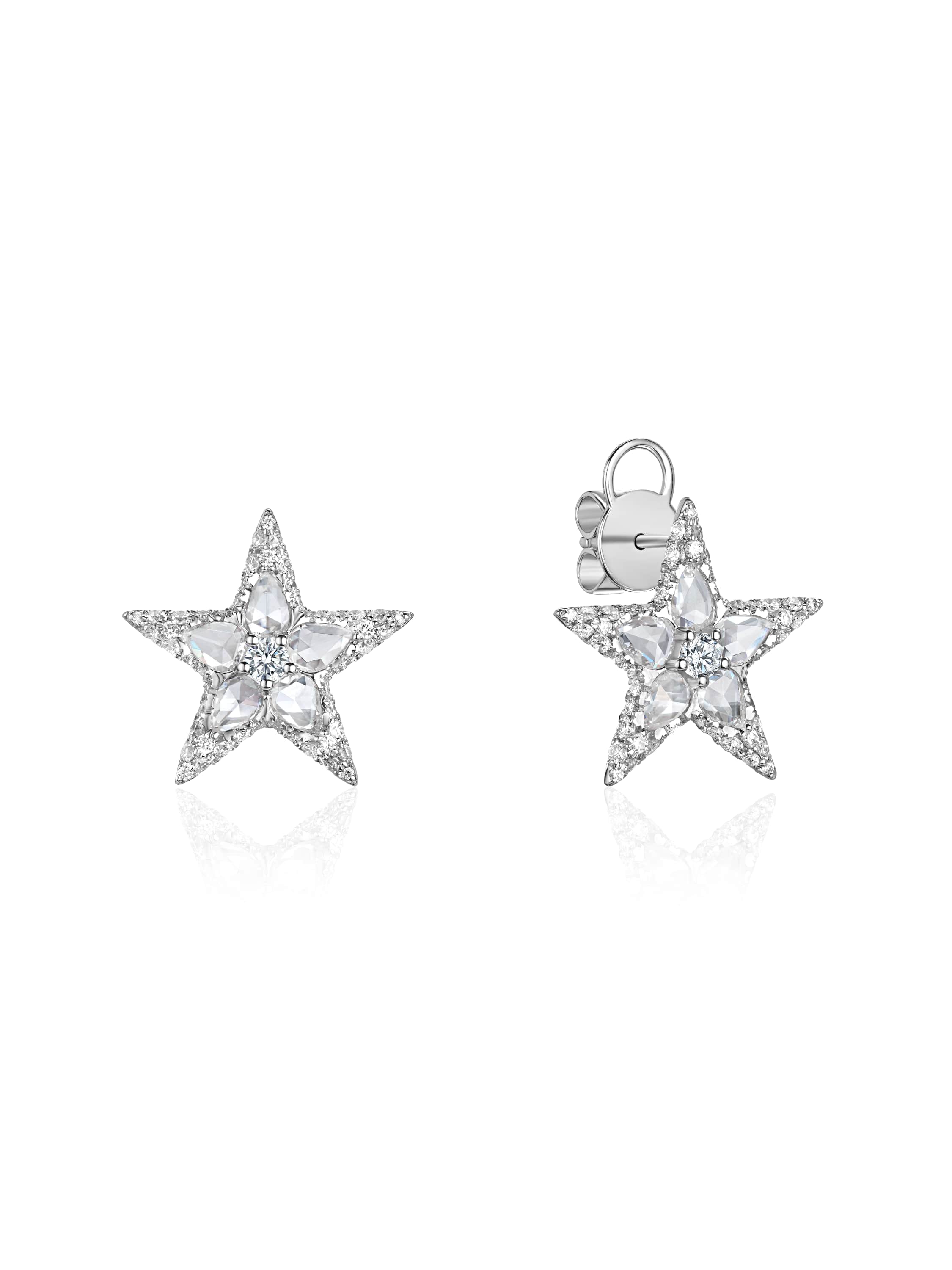 Star-shaped white gold earrings with 10 Rose Cut diamonds 1.40 ct and 102 round diamonds 0.87 ct.