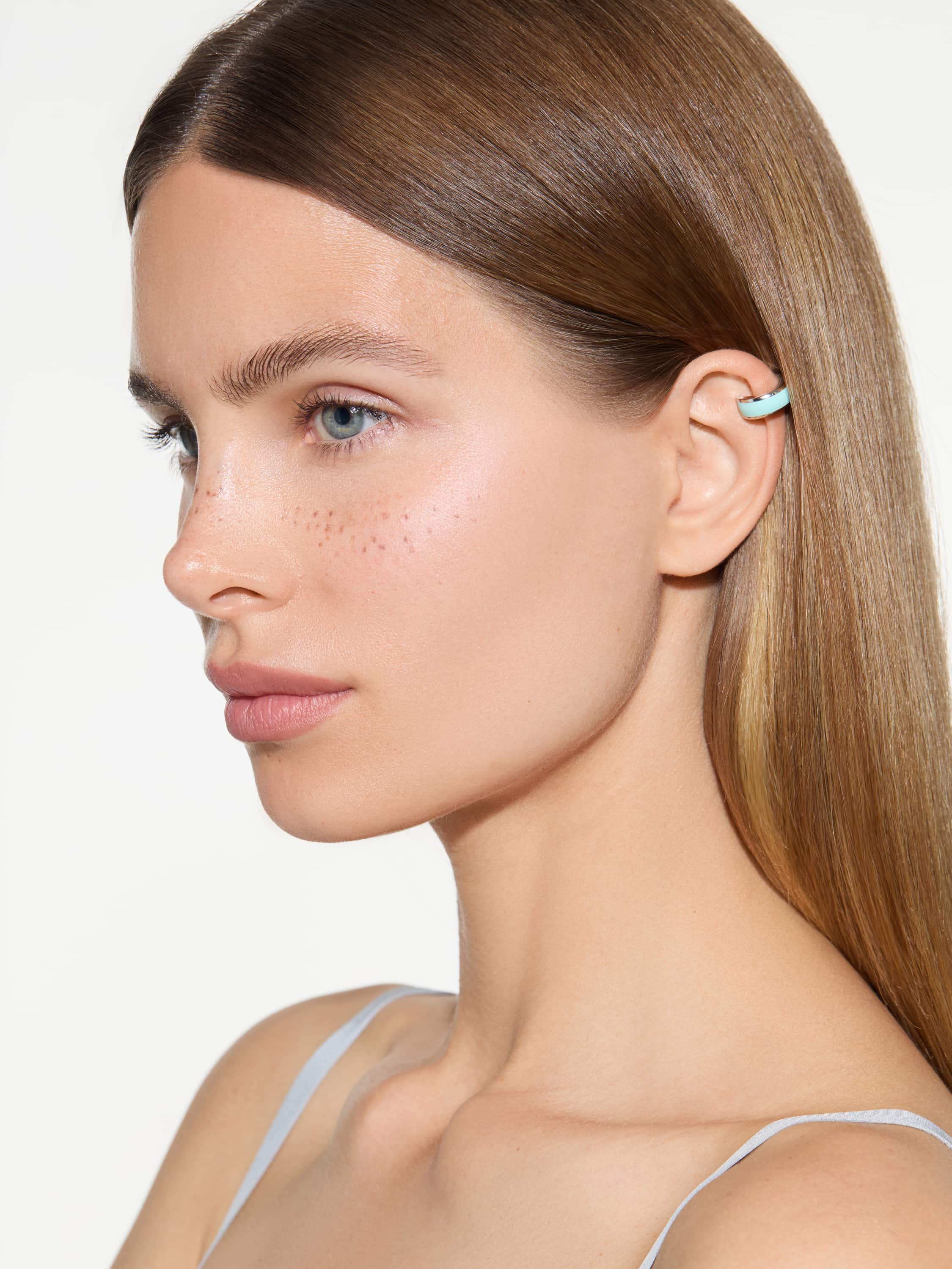 Wide white gold ear cuff with Paraiba-colored enamel.