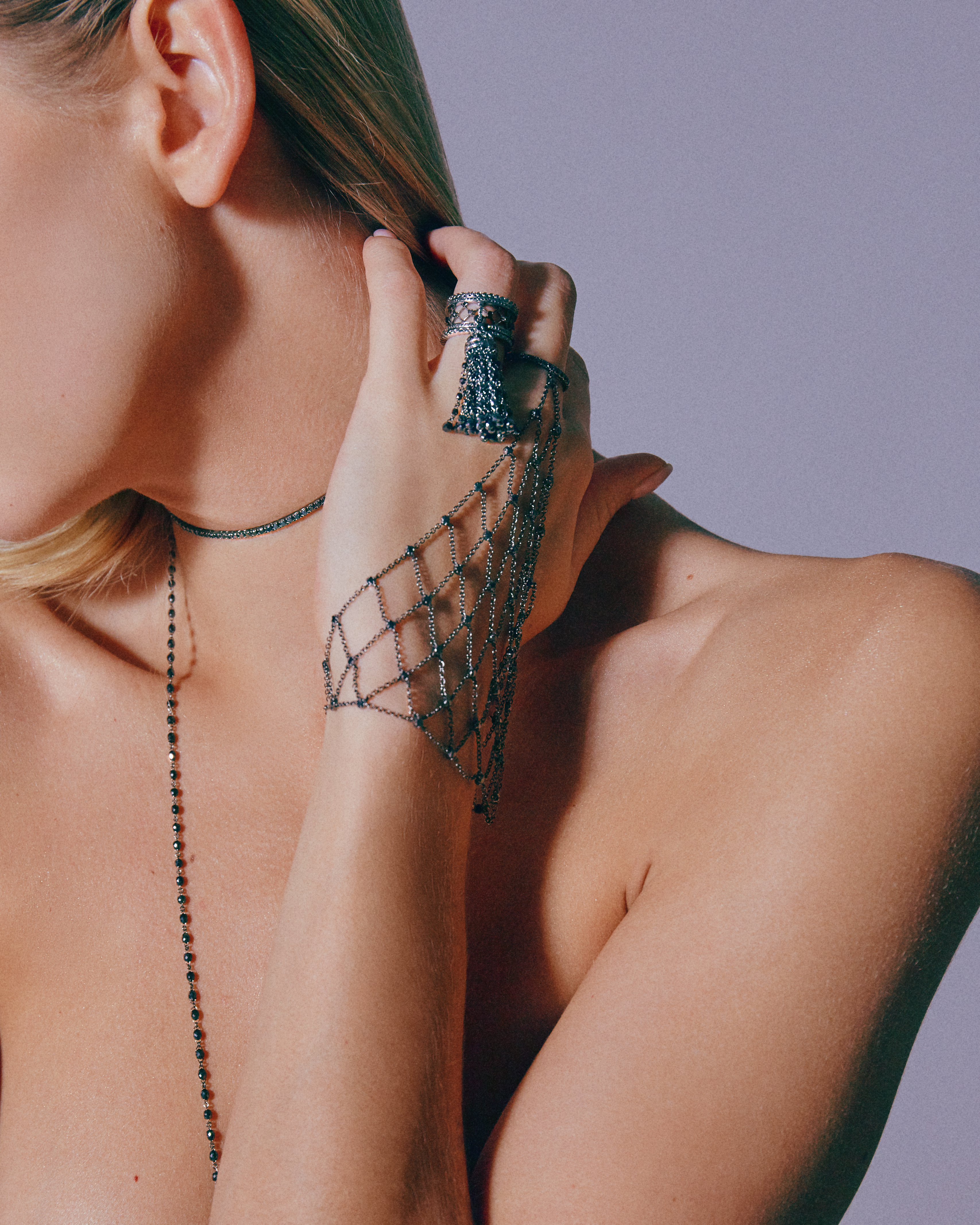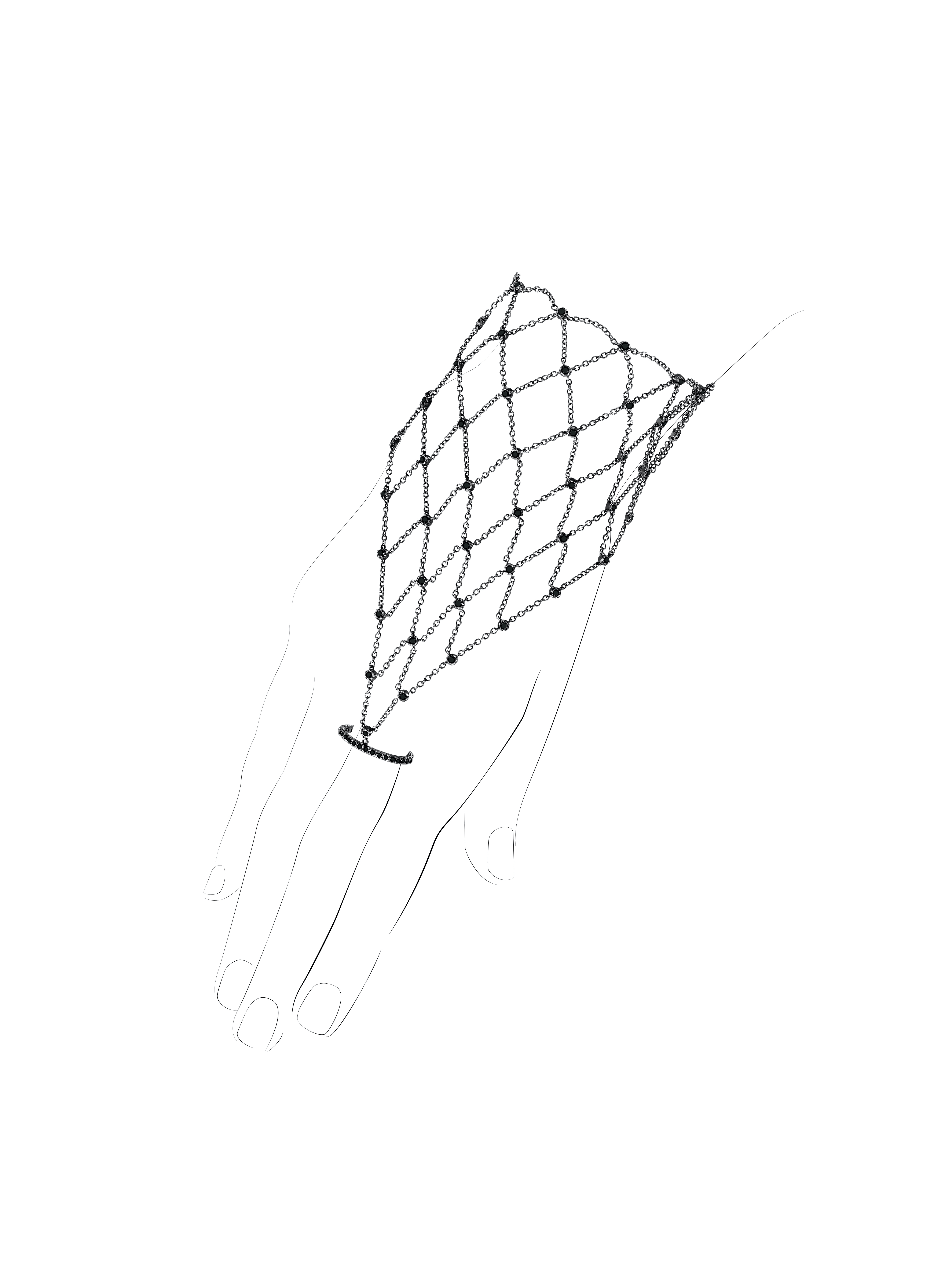 Slave bracelet made of oxidized gold with 99 black round-cut diamonds with a total weight of 2.27 ct.