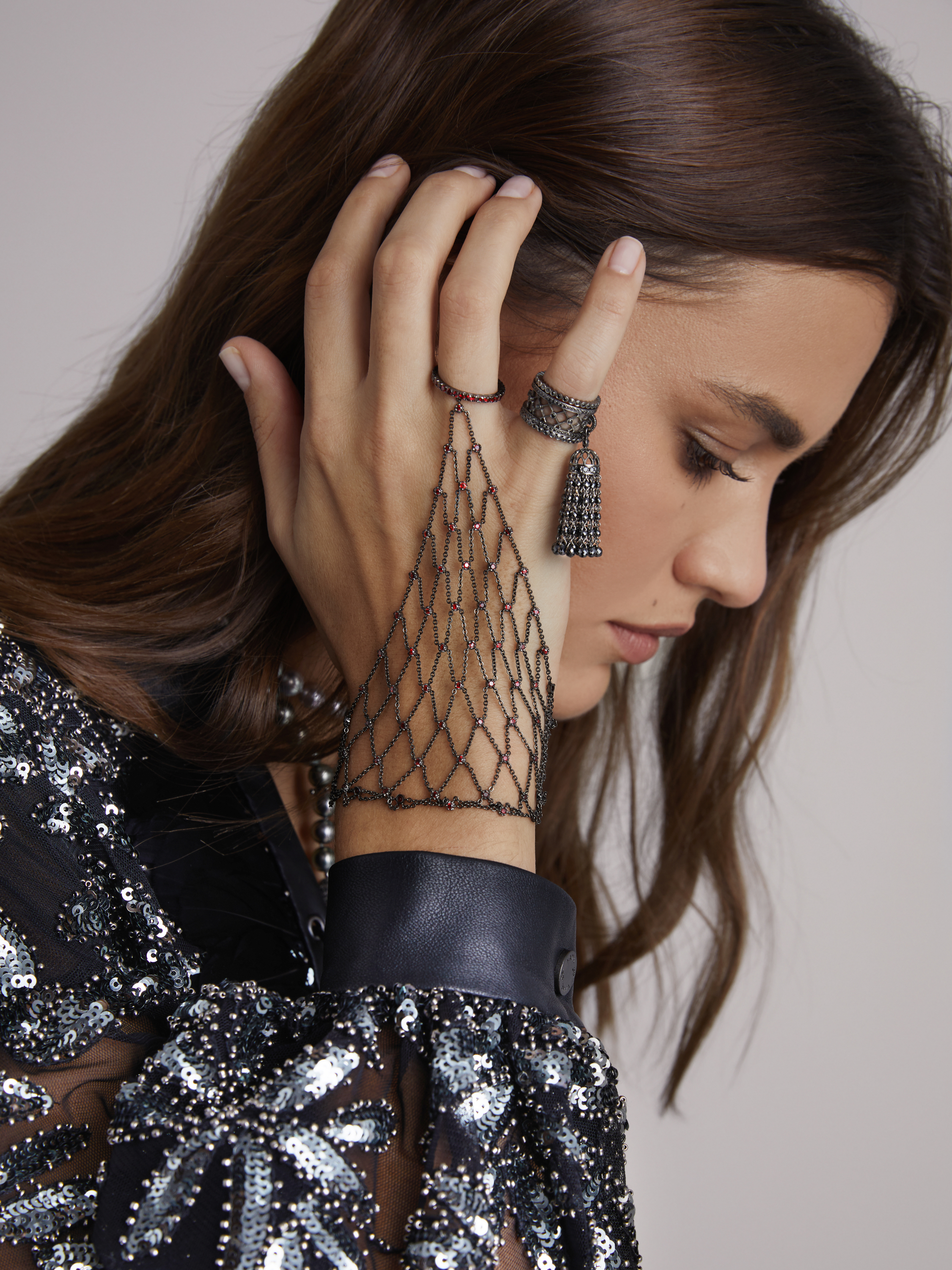 Slave bracelet made of 585 oxidized gold with 113 round garnets with a total weight of 3.37 ct.