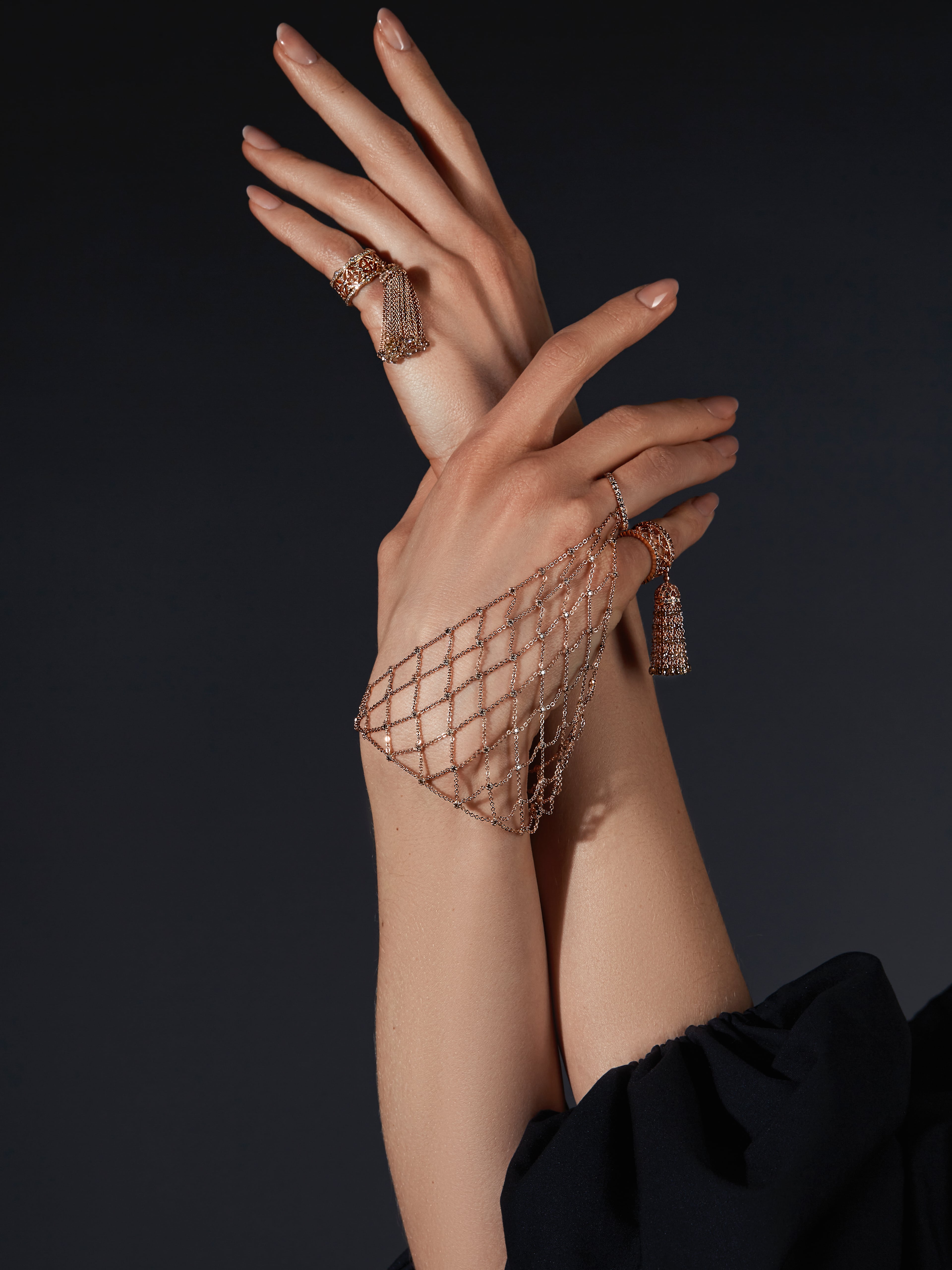 Slave bracelet made of rose gold with 170 brown round-cut diamonds with a total weight of 2.66 ct.