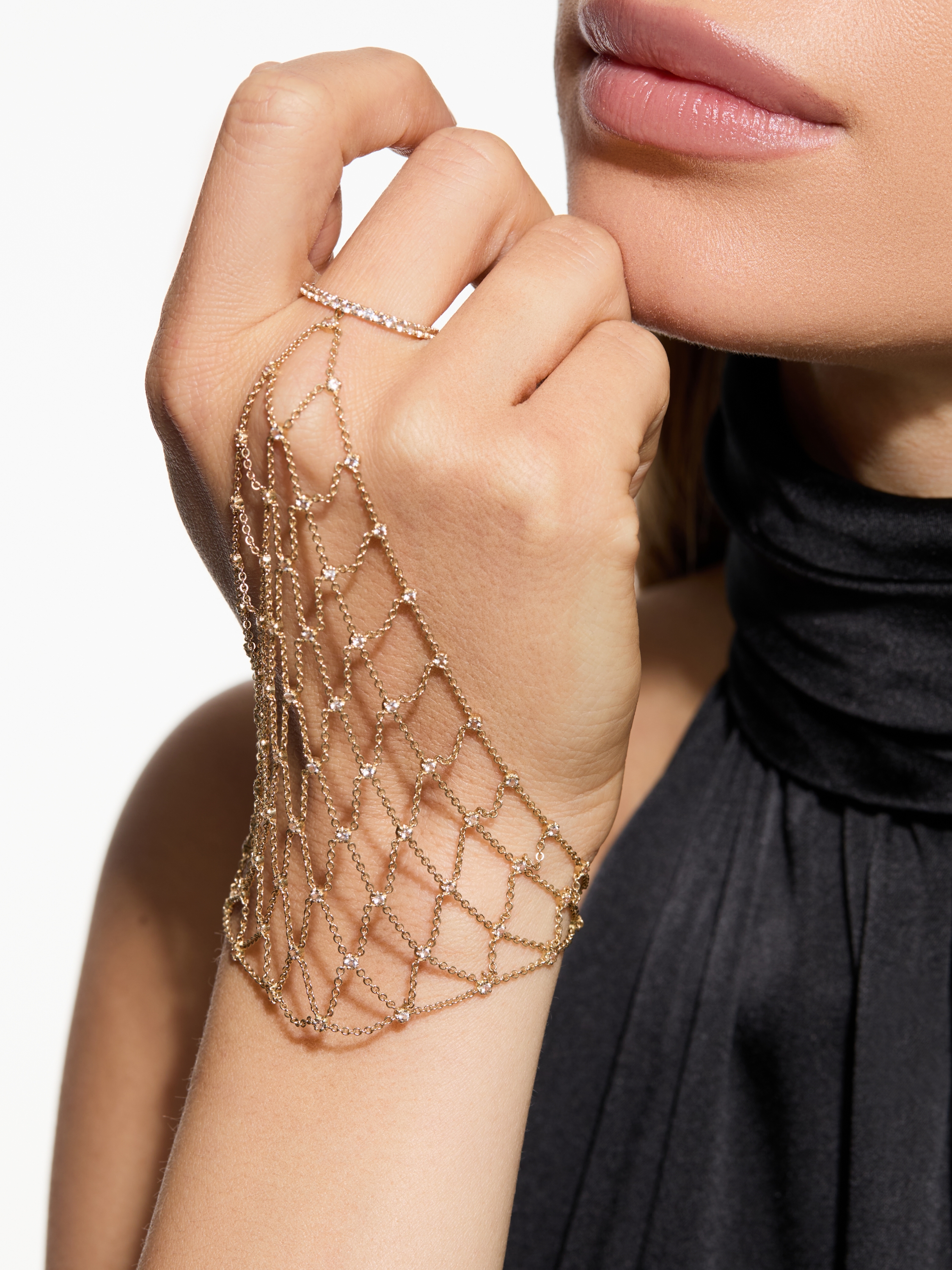 Slave bracelet in yellow gold with 110 colorless round-cut topazes with a total weight of 2.95 ct.