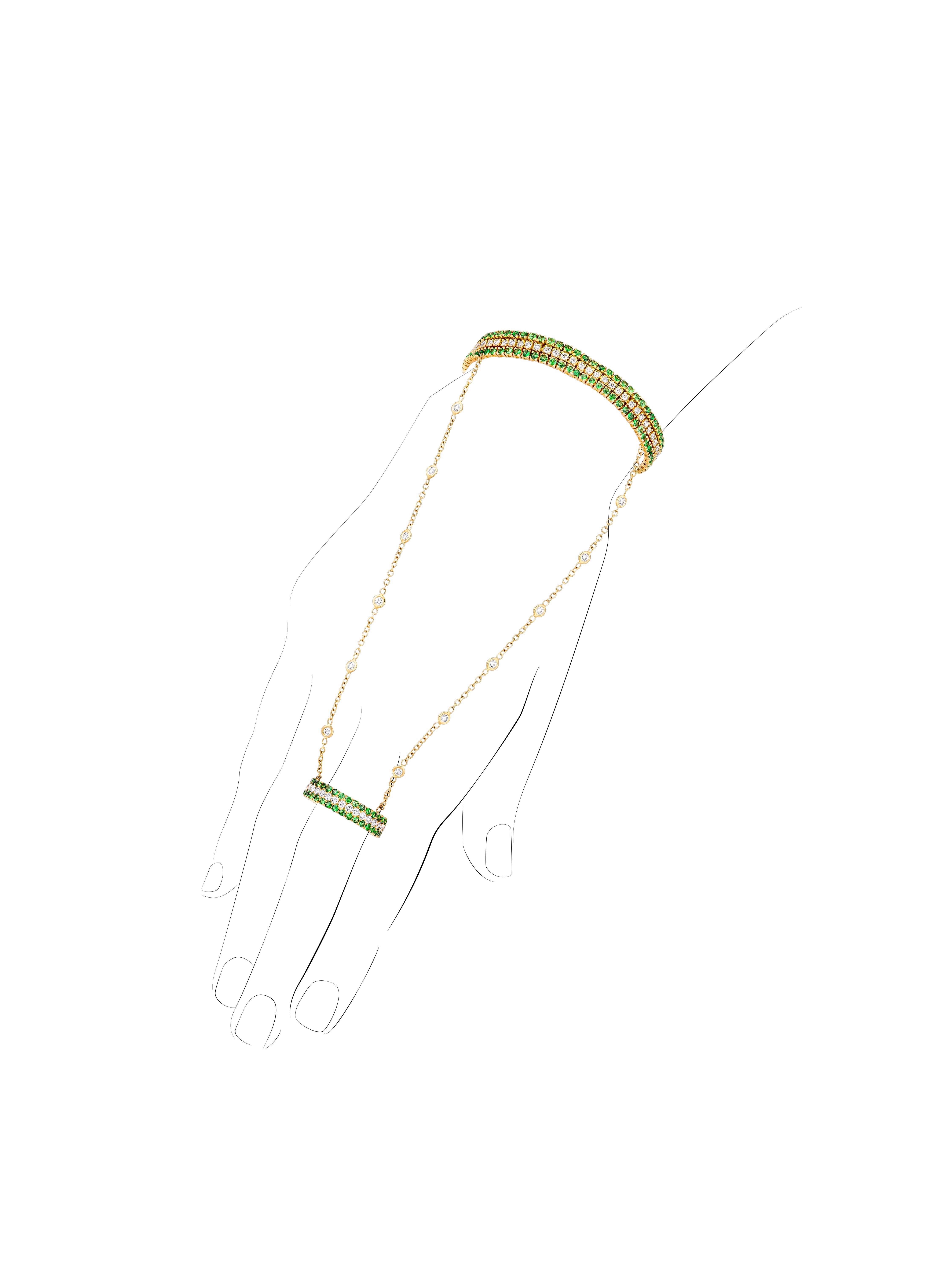 Yellow Gold, Diamonds & Emeralds Slave Bracelet