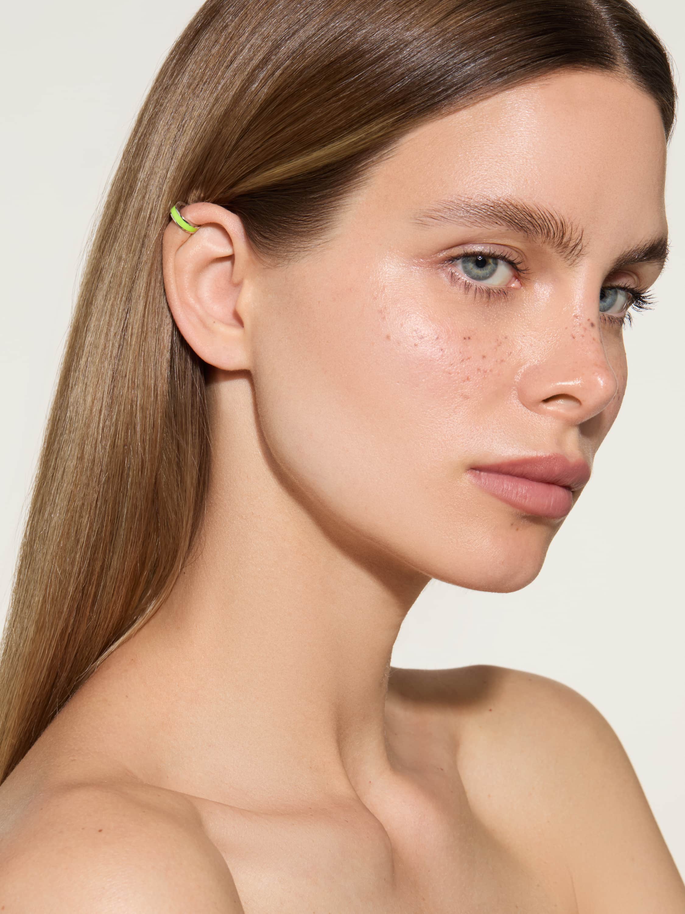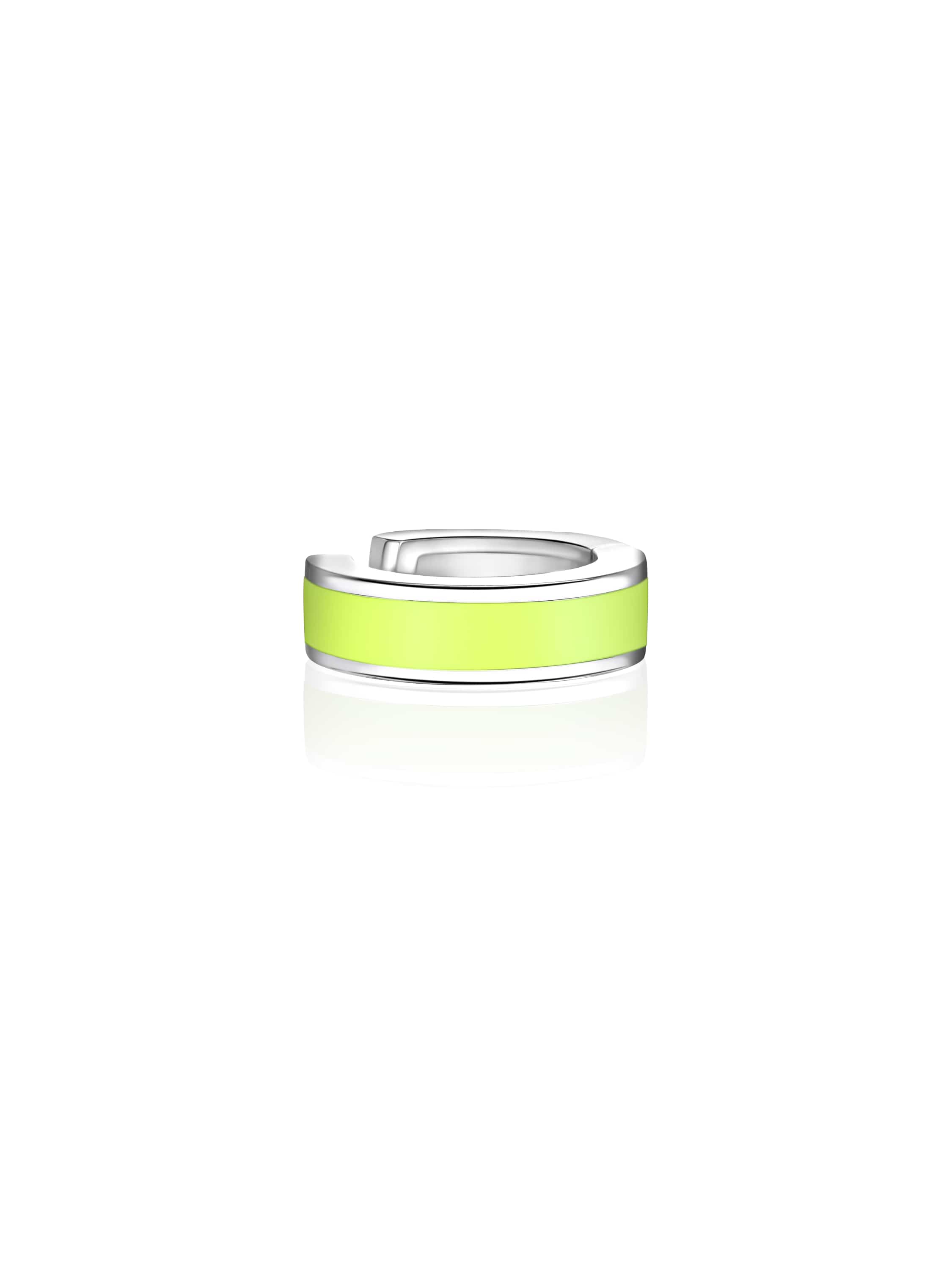 Narrow white gold ear cuff with Lime enamel
