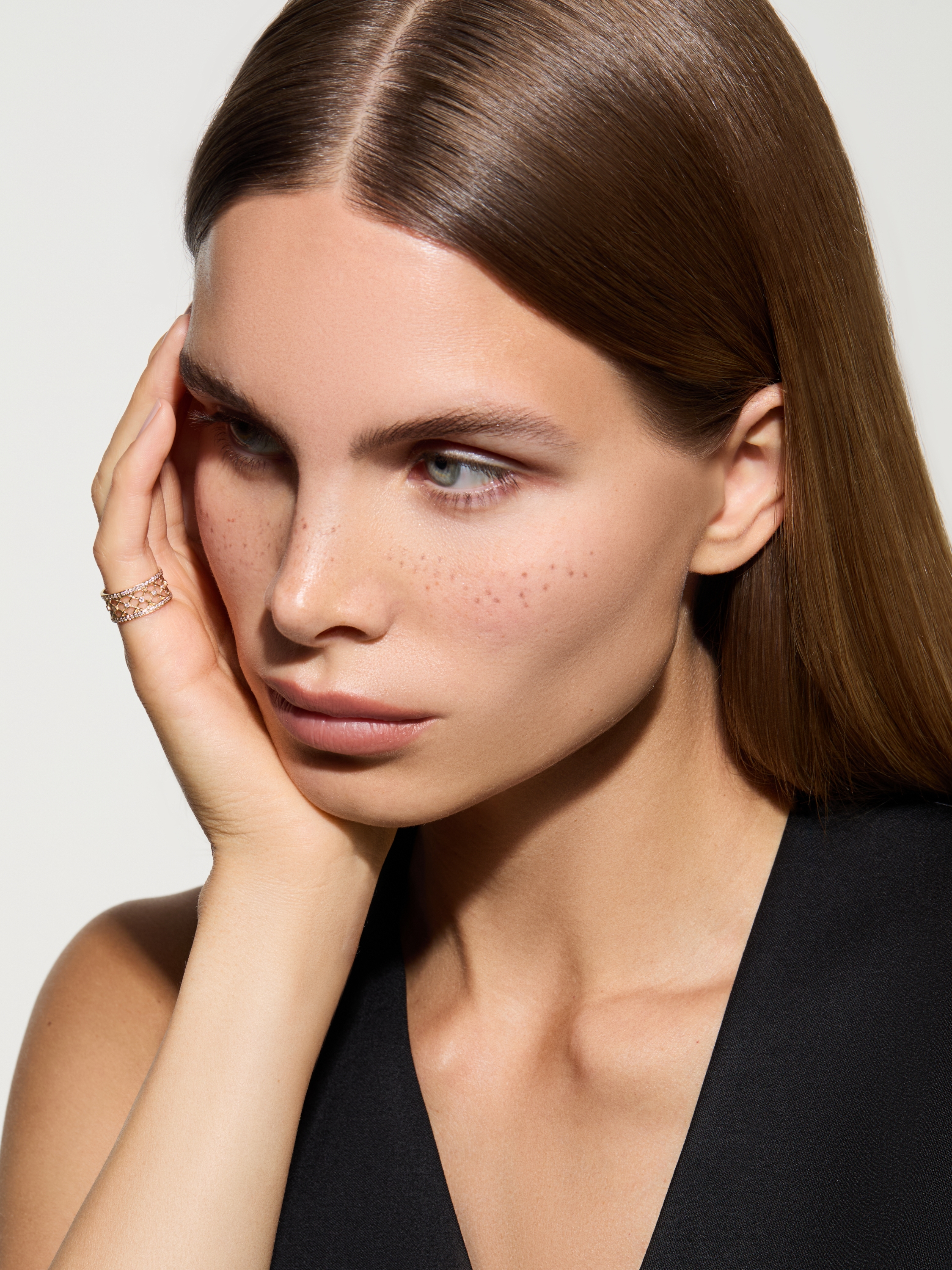 Gold ring with 94 round-cut diamonds 0.40 ct, and 13 round diamonds 0.08 ct.