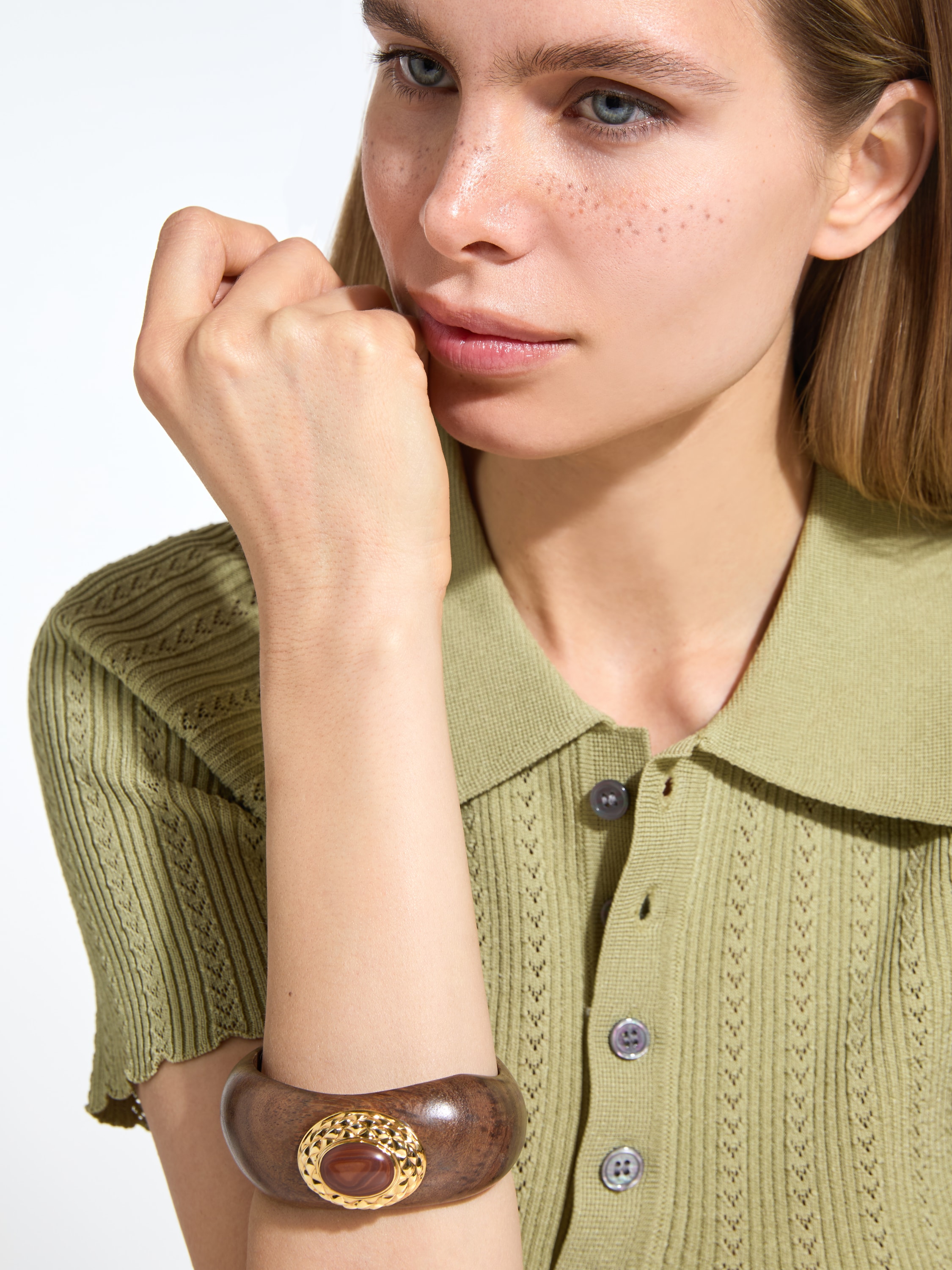 Wooden bracelet with 1 oval tiger’s eye cabochon (2.62 g).