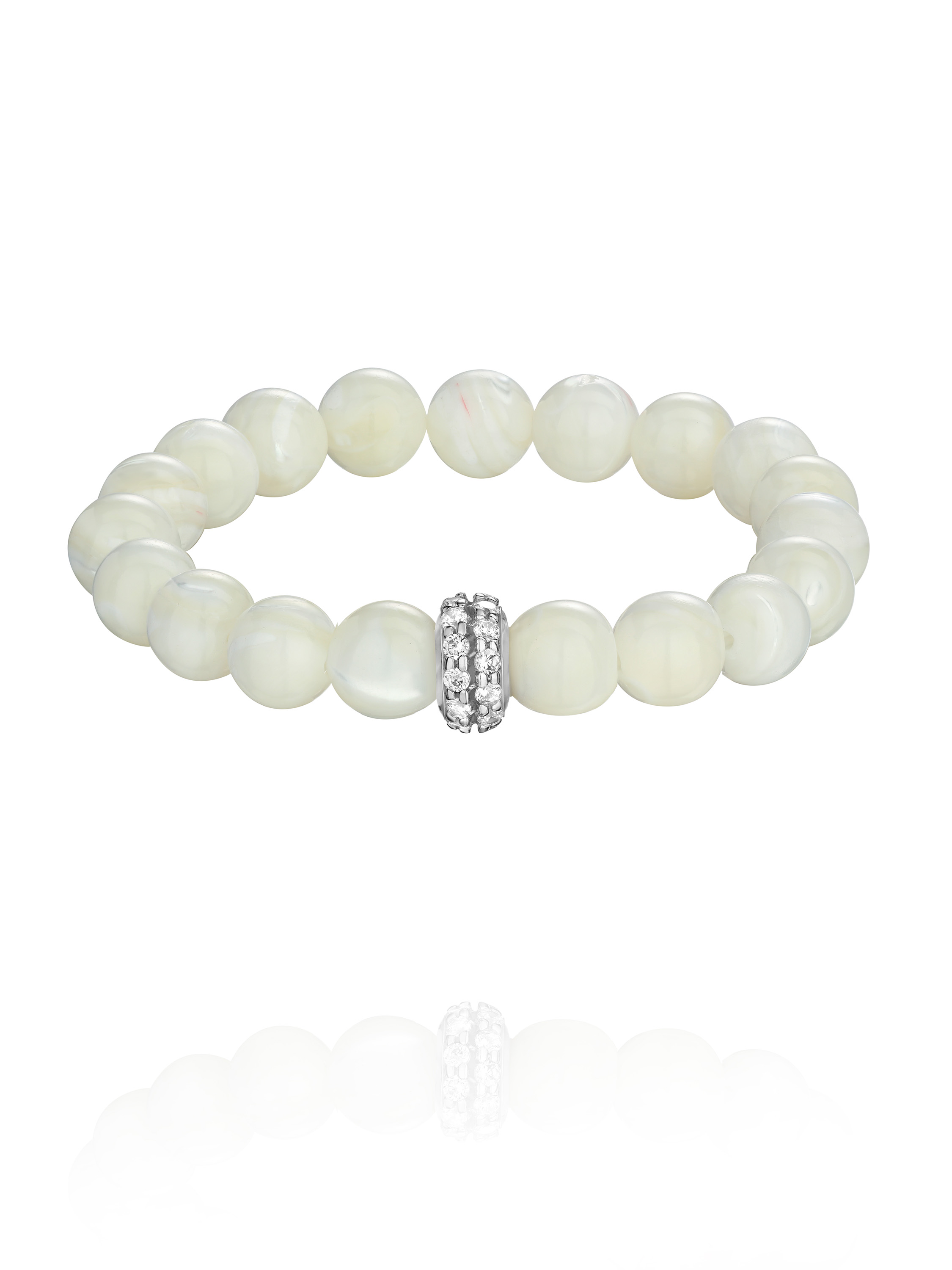 Silver bracelet with mother-of-pearl beads and cubic zirconia